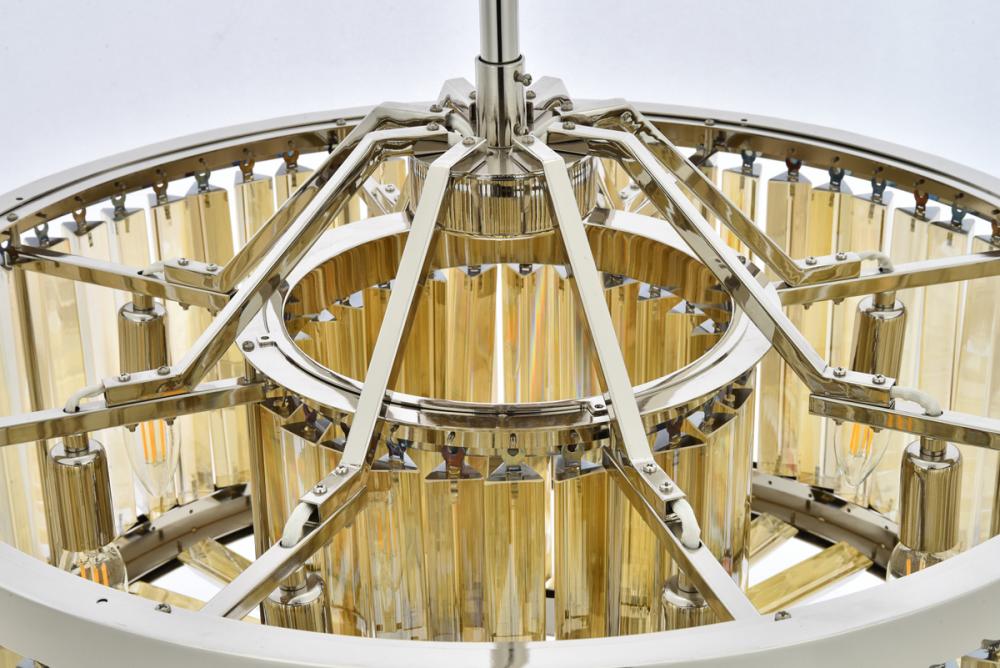 An infinity of light, caught in a circle of crystal bars in clear, golden teak, or Silver shade, the Chelsea collection will bring a shimmer of brilliance to your home. The circular steel frame in a mocha-brown or polished-nickel finish lends subtle strength to this pendant lamp design. The Chelsea collection adds transitional grace especially to a kitchen, bedroom, or dining room.