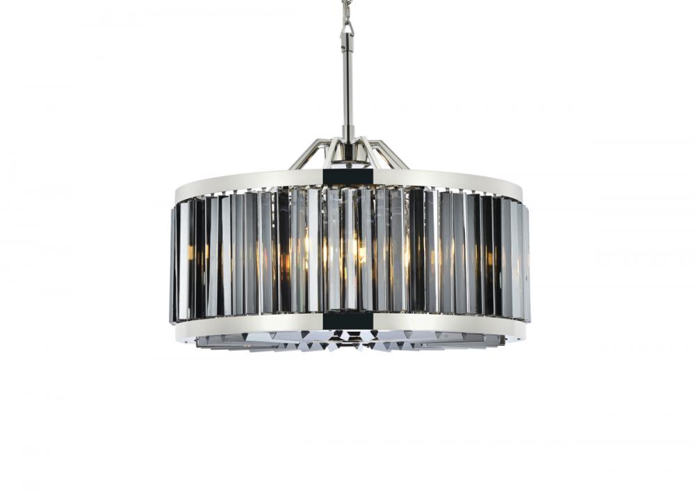 An infinity of light, caught in a circle of crystal bars in clear, golden teak, or Silver shade, the Chelsea collection will bring a shimmer of brilliance to your home. The circular steel frame in a mocha-brown or polished-nickel finish lends subtle strength to this chandelier design. The Chelsea collection adds transitional grace especially to a kitchen, bedroom, or dining room.
