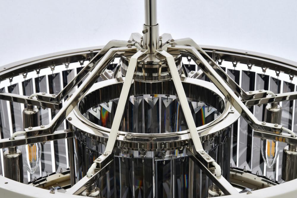 An infinity of light, caught in a circle of crystal bars in clear, golden teak, or Silver shade, the Chelsea collection will bring a shimmer of brilliance to your home. The circular steel frame in a mocha-brown or polished-nickel finish lends subtle strength to this chandelier design. The Chelsea collection adds transitional grace especially to a kitchen, bedroom, or dining room.