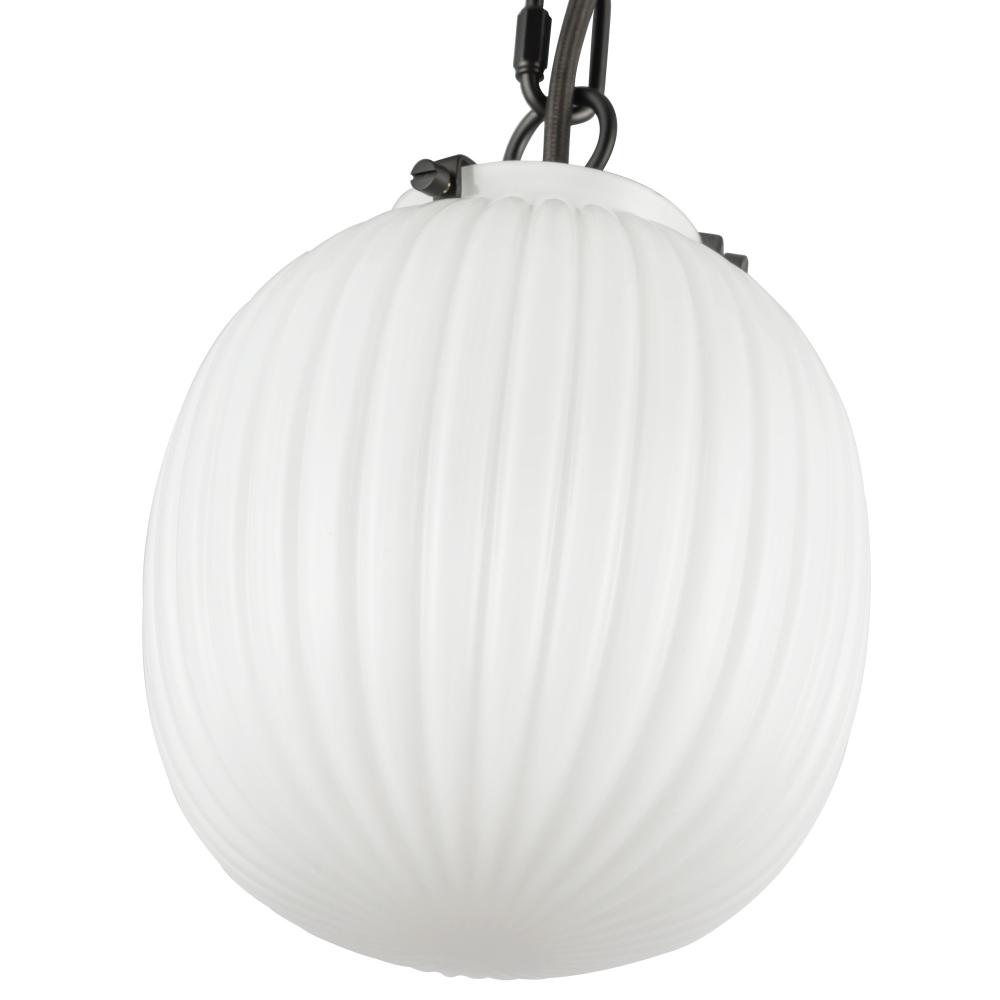 Cherise 7-in Matte Black/Glossy Ribbed Opal Glass Socket Pendant