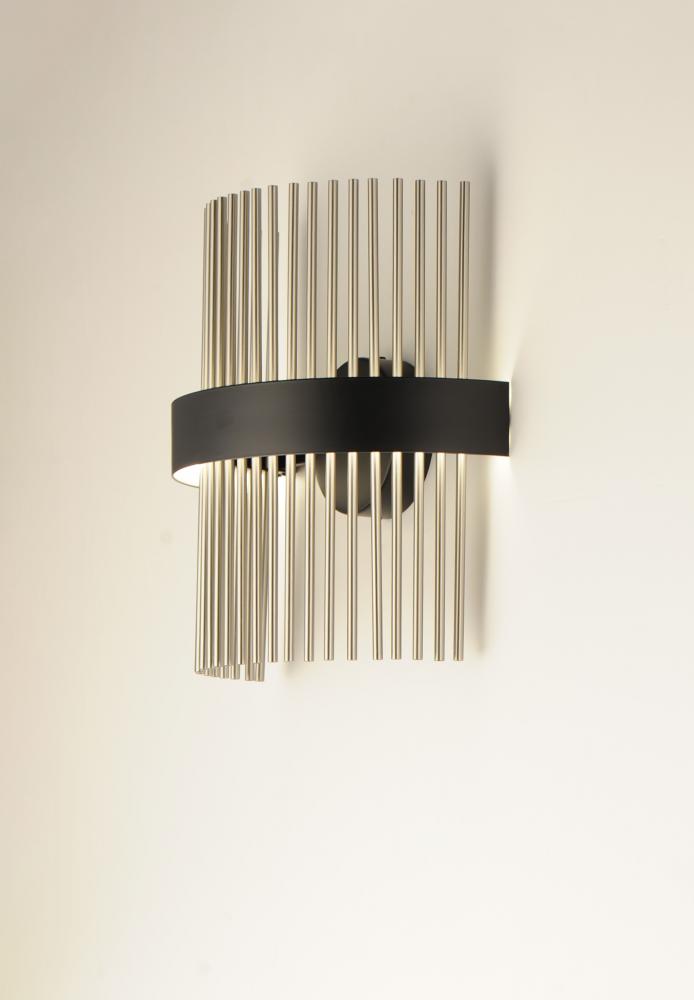 Wide bands of Matte Black metal supports an evenly spaced row of thin tubing finished in your choice of Satin Brass, Satin Nickel or a combination of the two. The stylish design is connected by WiZ that enables the lighting's White Ambiance between 270