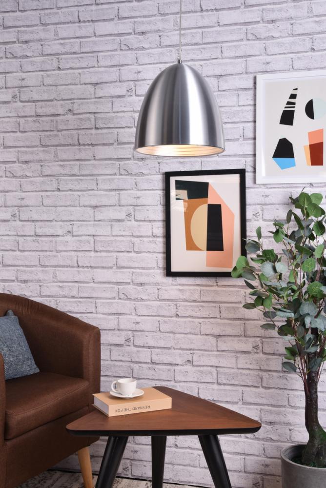 The burnished nickel aluminum finish shade easily adapts to any decor