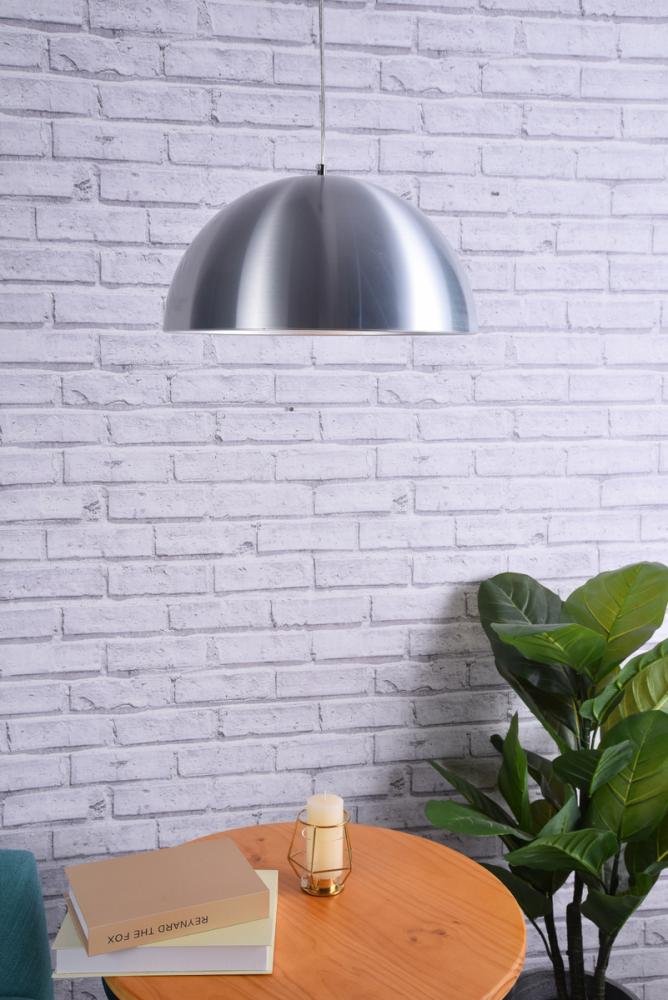 The burnished nickel aluminum finish shade easily adapts to any decor