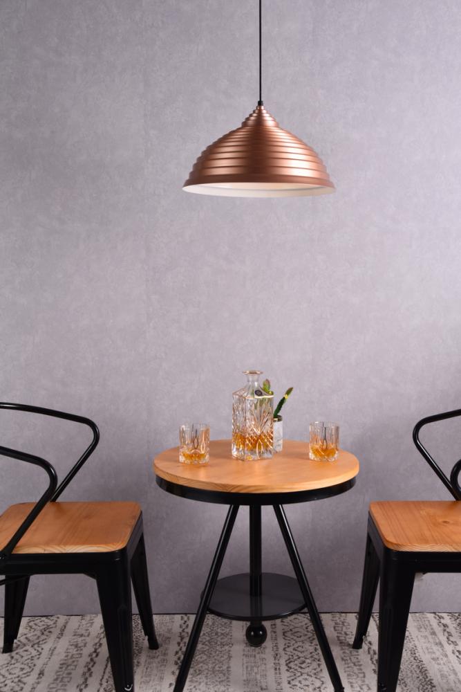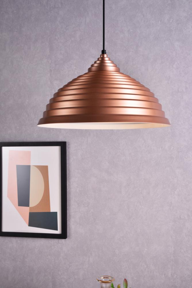 Contrasting white finish on the inside of the shade