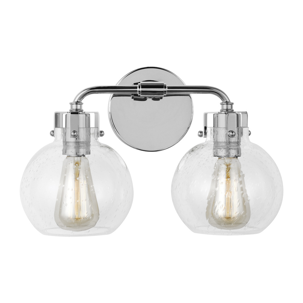 Clara features Clear Seeded glass shades that subtly diffuse the lamping while allowing the exposed bulb to be a central design element of the fixture. Choose the look that is right for your space with four finish options: Burnished Brass, Chrome, Satin Nickel, Oil Rubbed Bronze or a two-toned finish of Textured Black with Chrome.