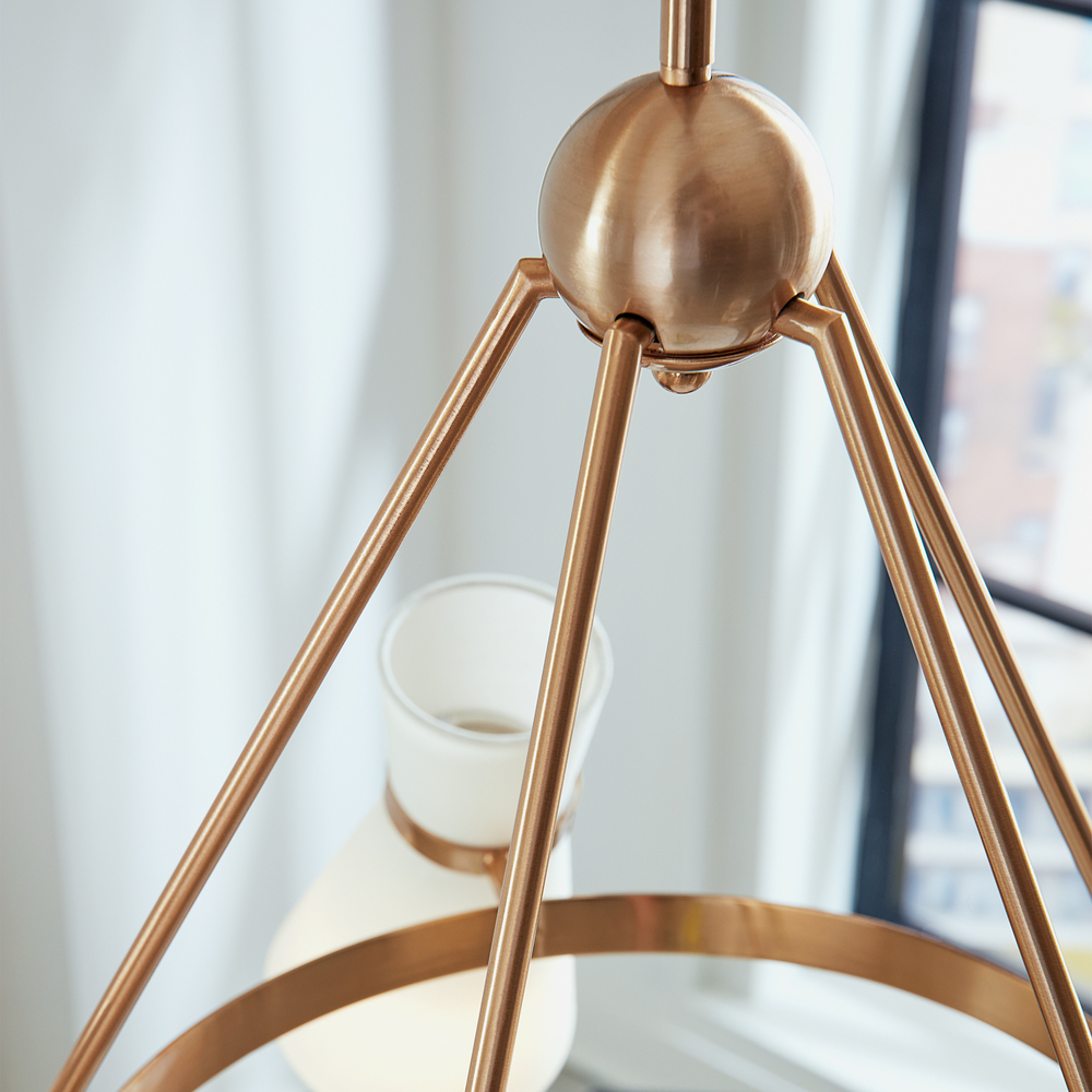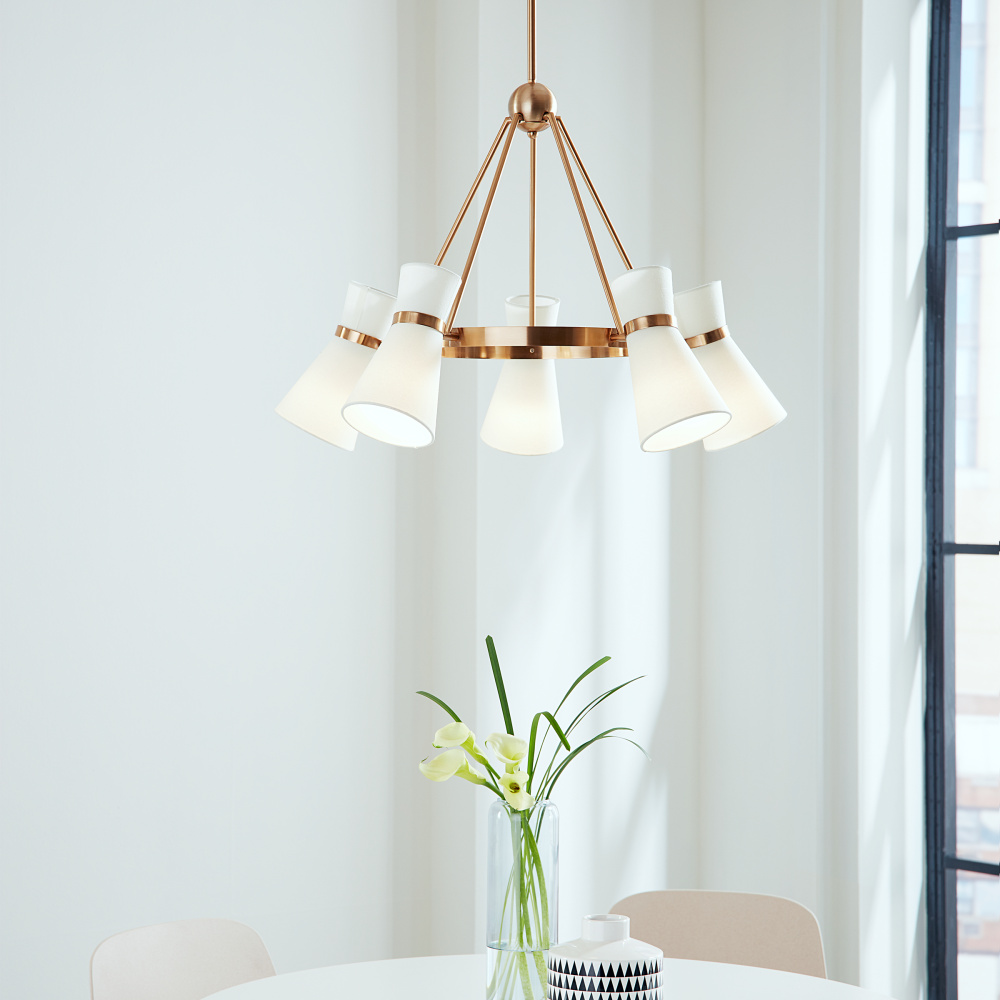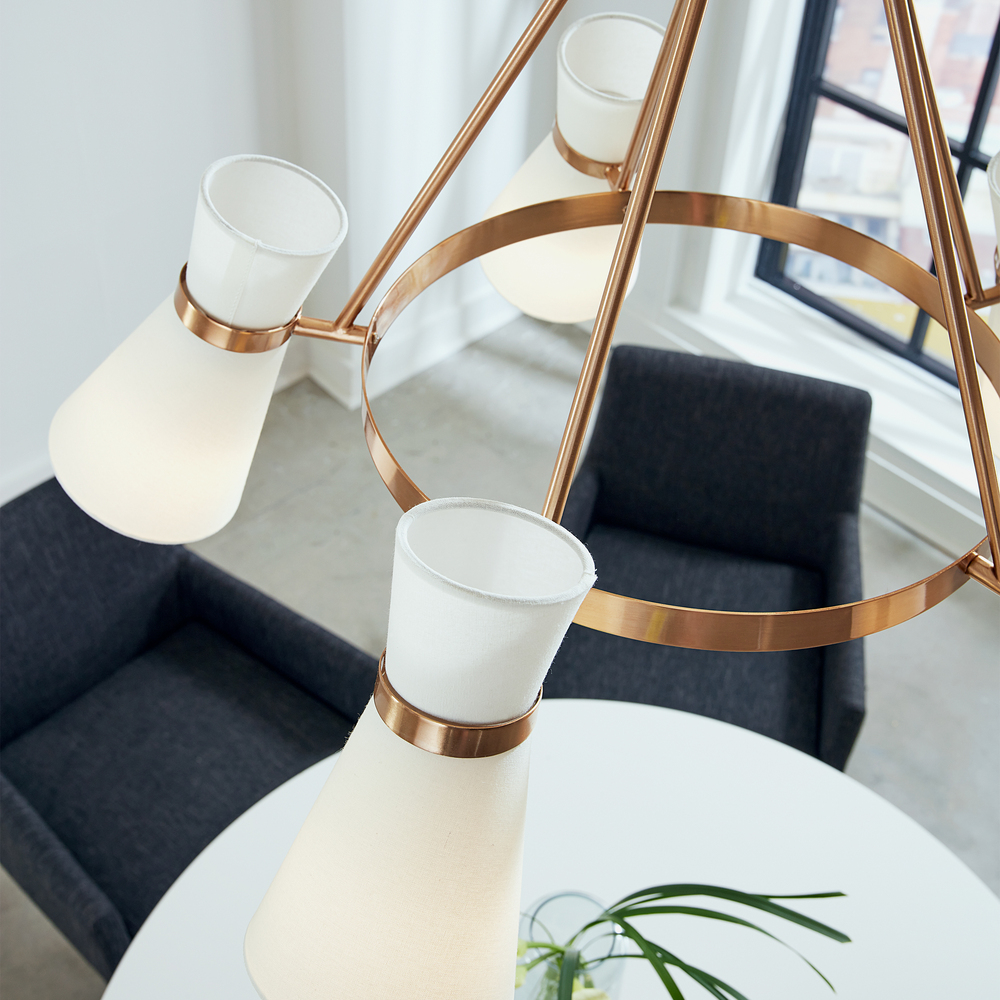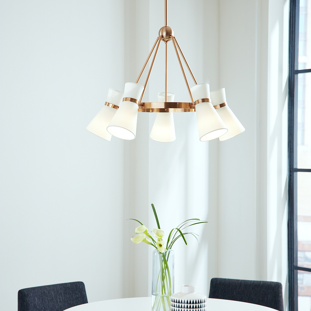Sleek, contemporary, damp-rated fixture will complement any dining room, kitchen, living room, family room, or foyer