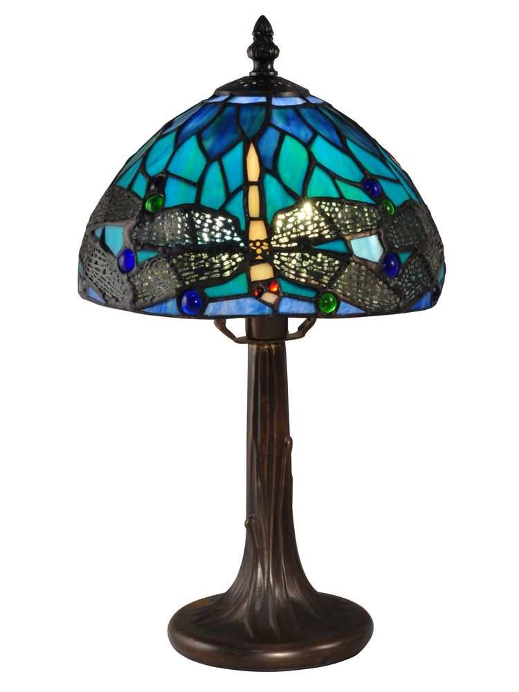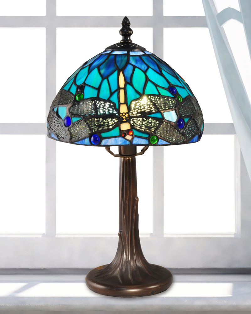This Classic Tiffany Accent Lamp Is Big On Authentic Tiffany Style. The Graceful Dome Shade Is Hand Crafted Of Deep Azure Blue Art Glass Panels. A Row Of Tiffany’S Iconic Dragonflies, Each With Bodies Fashioned Of Delicate Filigree And Eyes Of Fiery Art G