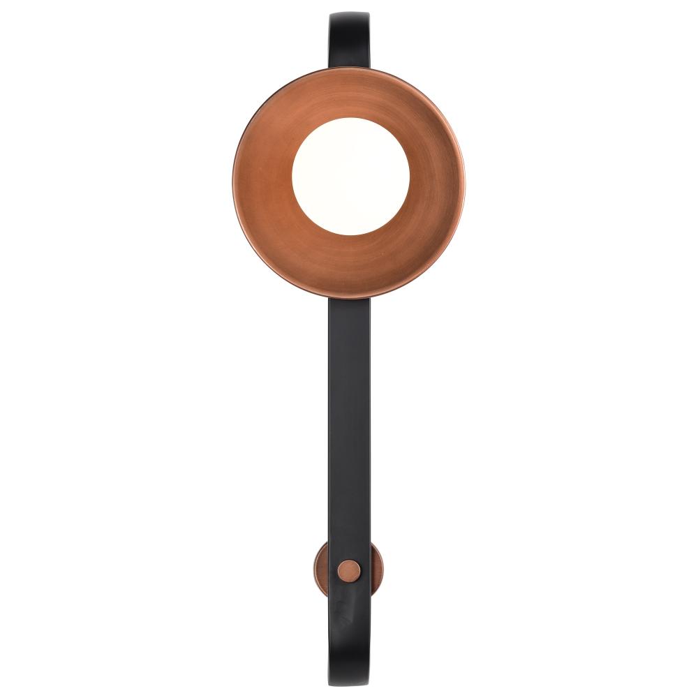 Colby 1 Light Wall Sconce; Matte Black and Antique Copper Finish