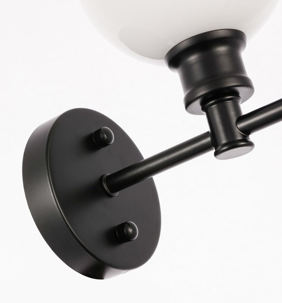 The Collier Collection of lights will be sure to have your guests admire your modern sense of style with the beautiful simplicity of its shape and form. The sleek curvature of the ball shaped shade creates the juxtaposition of intricate simplicity, achieving a style that has both form and function. This wall lamp can be oriented facing up or down, and can shine by itself or paired with another to create an even brighter illumination that will brighten any home. Available in a brass, chrome, or black finish with either a clear or frosted ball glass shade, it is the perfect wall lamp to enhance your bathroom, foyer, or hallways, allowing you to always live in chic and fashionable lifestyle (light bulbs not included).