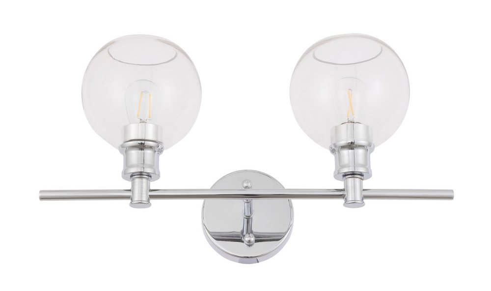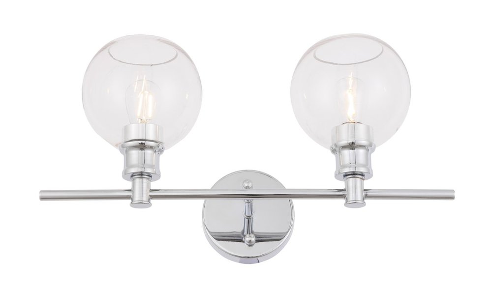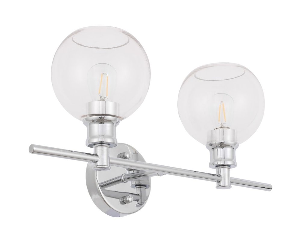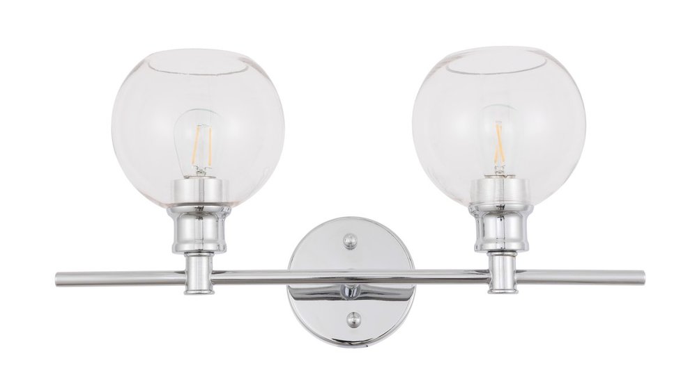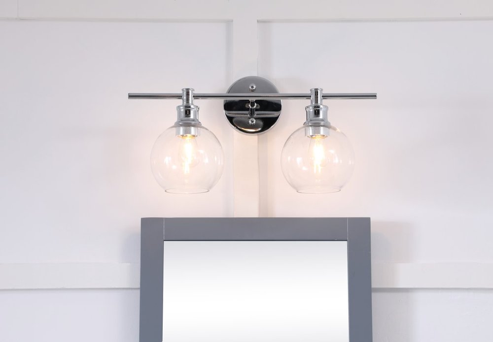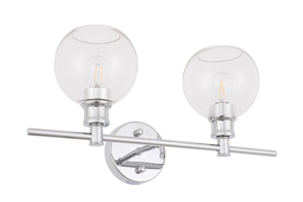 The Collier Collection of lights will be sure to have your guests admire your modern sense of style with the beautiful simplicity of its shape and form. The clean lines of the ball shaped shades create the juxtaposition of intricate simplicity, achieving a style that has both form and function. This wall lamp can be oriented facing up or down, but will always illuminate your room. Available in a brass, chrome, or black finish with either a clear or frosted ball glass shade, it is the perfect wall lamp to enhance your bathroom, foyer, or hallways, allowing you to always live a chic and fashionable lifestyle (light bulbs not included).