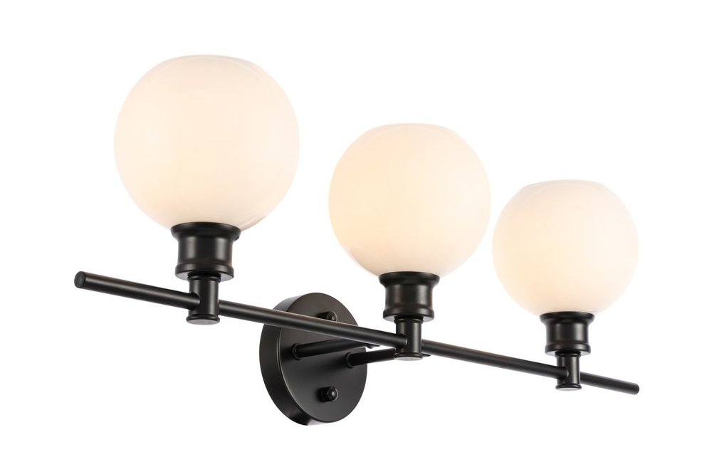 The Collier Collection of lights will be sure to have your guests admire your modern sense of style with the beautiful simplicity of its shape and form. The clean lines of the ball shaped shades create the juxtaposition of intricate simplicity, achieving a style that has both form and function. This wall lamp can be oriented facing up or down, but will always illuminate your room. Available in a brass, chrome, or black finish with either a clear or frosted ball glass shade, it is the perfect wall lamp to enhance your bathroom, foyer, or hallways, allowing you to always live a chic and fashionable lifestyle (light bulbs not included).