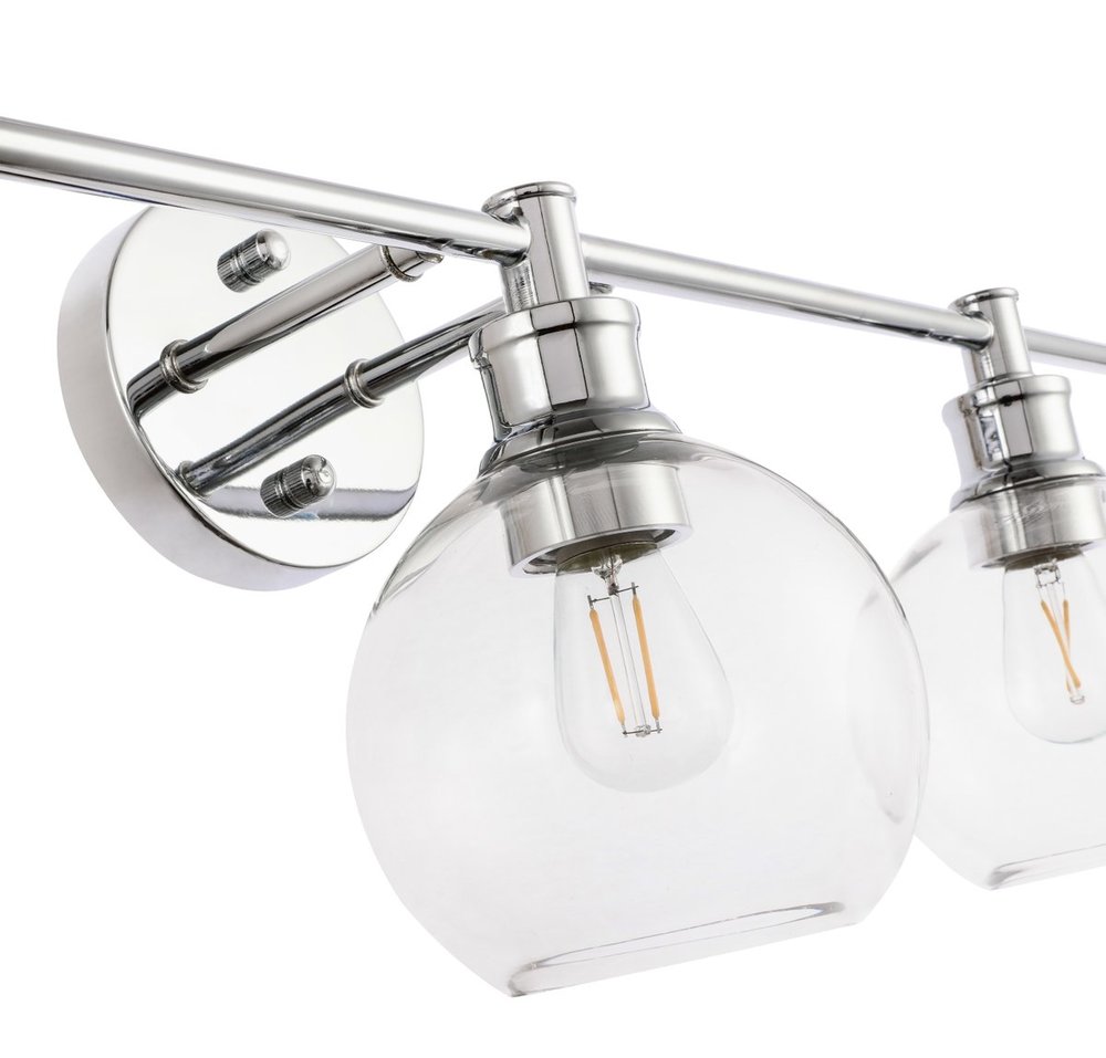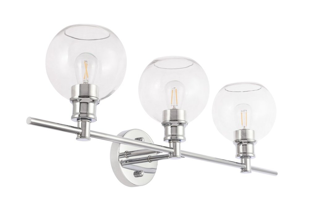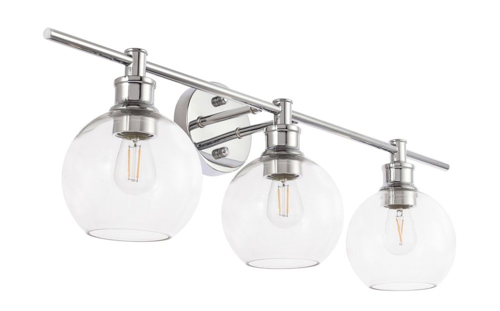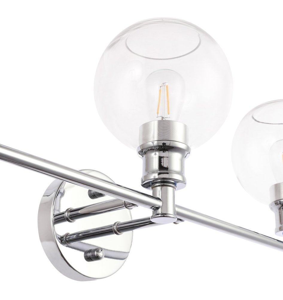 The Collier Collection of lights will be sure to have your guests admire your modern sense of style with the beautiful simplicity of its shape and form. The clean lines of the ball shaped shades create the juxtaposition of intricate simplicity, achieving a style that has both form and function. This wall lamp can be oriented facing up or down, but will always illuminate your room. Available in a brass, chrome, or black finish with either a clear or frosted ball glass shade, it is the perfect wall lamp to enhance your bathroom, foyer, or hallways, allowing you to always live a chic and fashionable lifestyle (light bulbs not included).
