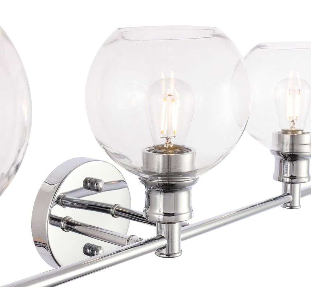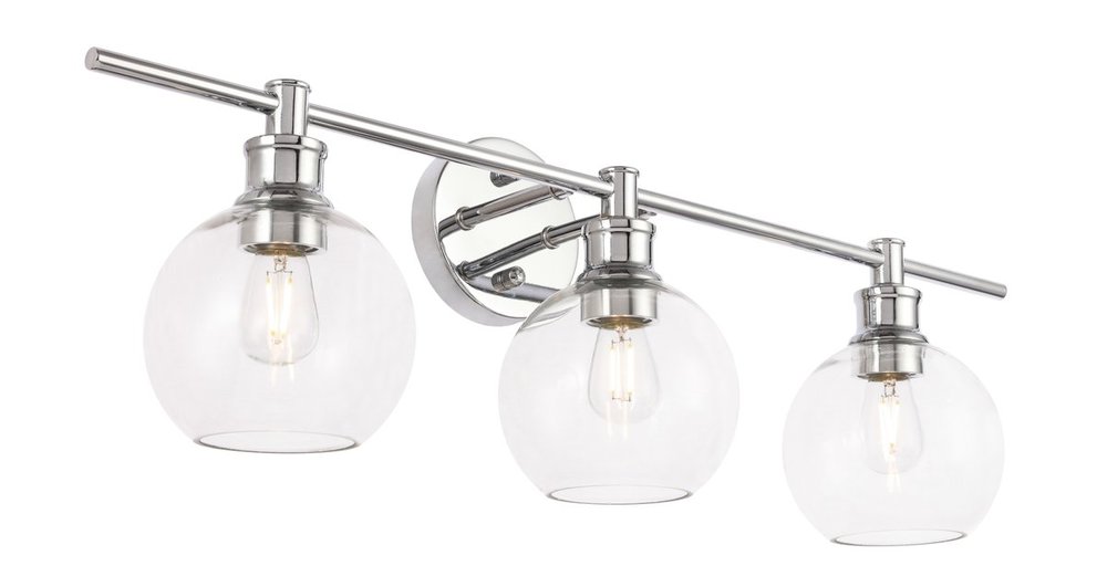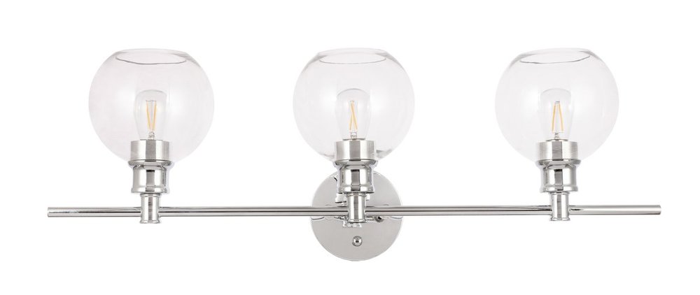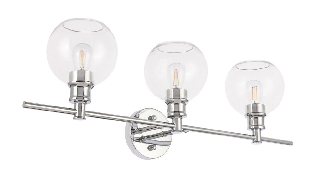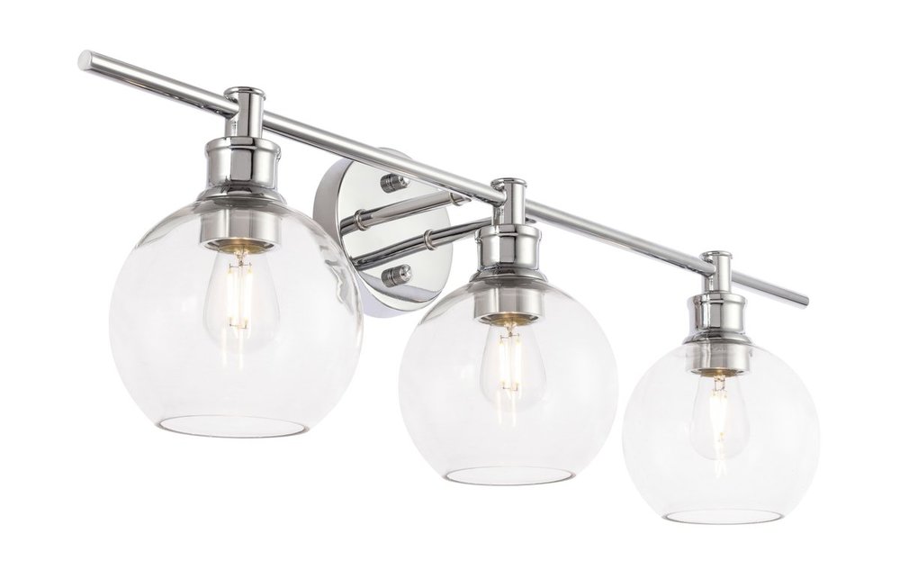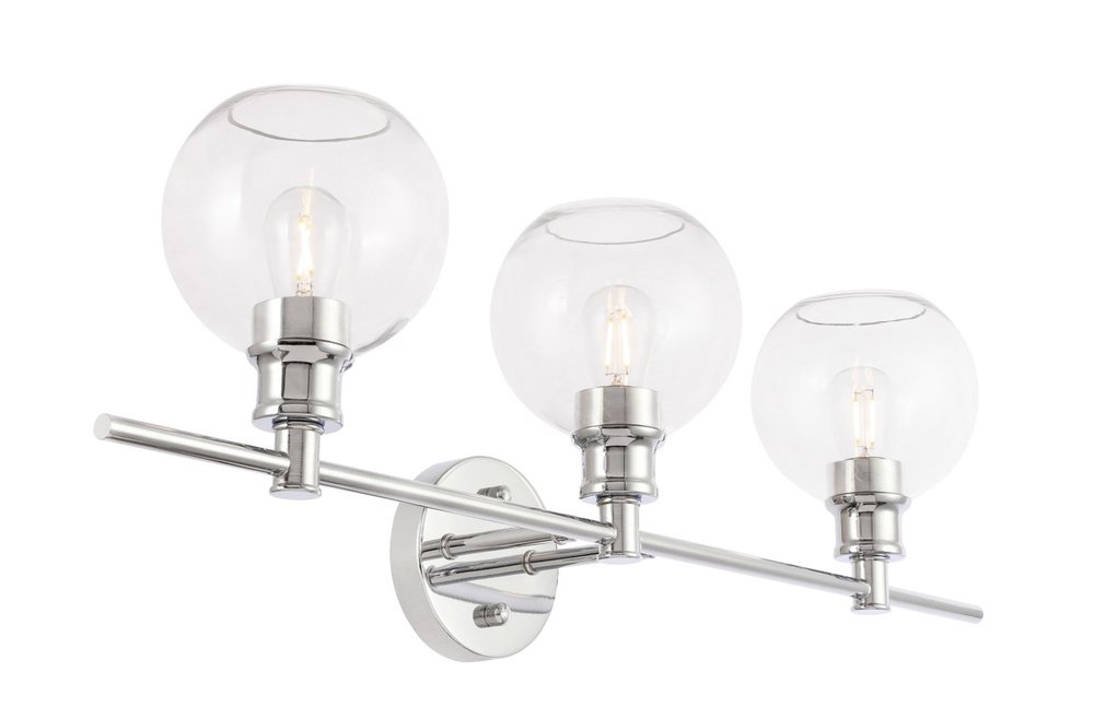 The Collier Collection of lights will be sure to have your guests admire your modern sense of style with the beautiful simplicity of its shape and form. The clean lines of the ball shaped shades create the juxtaposition of intricate simplicity, achieving a style that has both form and function. This wall lamp can be oriented facing up or down, but will always illuminate your room. Available in a brass, chrome, or black finish with either a clear or frosted ball glass shade, it is the perfect wall lamp to enhance your bathroom, foyer, or hallways, allowing you to always live a chic and fashionable lifestyle (light bulbs not included).