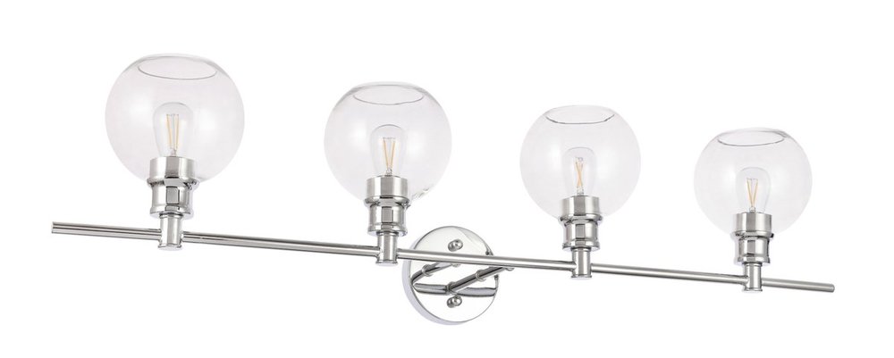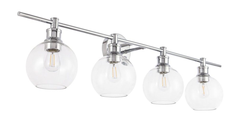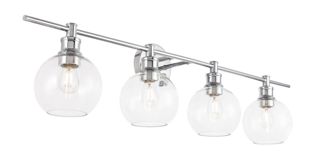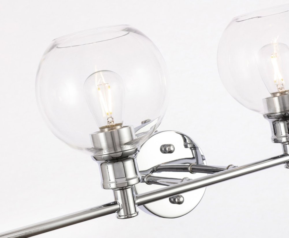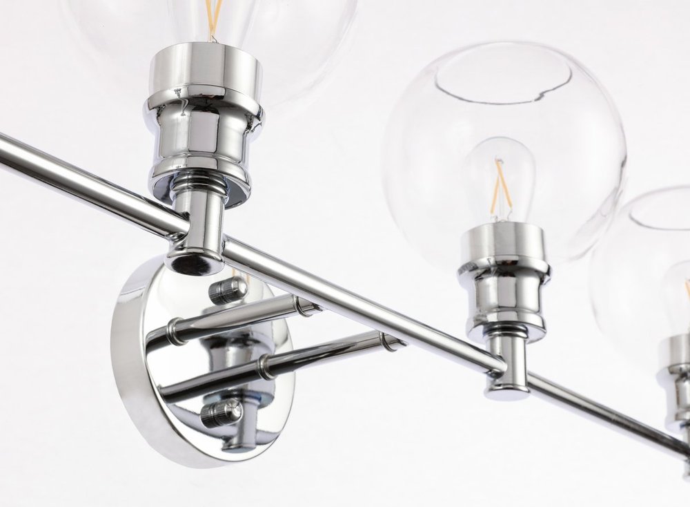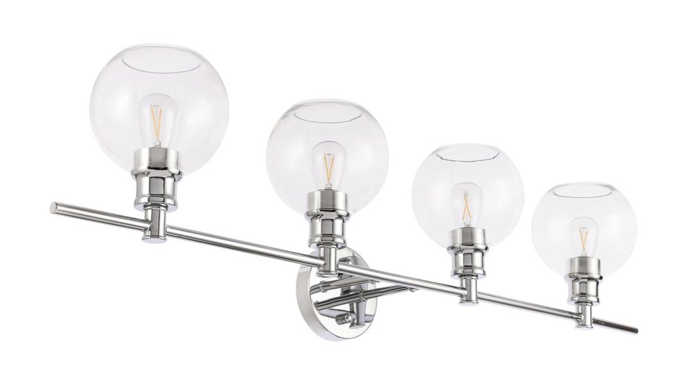 The Collier Collection of lights will be sure to have your guests admire your modern sense of style with the beautiful simplicity of its shape and form. The clean lines of the ball shaped shades create the juxtaposition of intricate simplicity, achieving a style that has both form and function. This wall lamp can be oriented facing up or down, but will always illuminate your room. Available in a brass, chrome, or black finish with either a clear or frosted ball glass shade, it is the perfect wall lamp to enhance your bathroom, foyer, or hallways, allowing you to always live a chic and fashionable lifestyle (light bulbs not included).