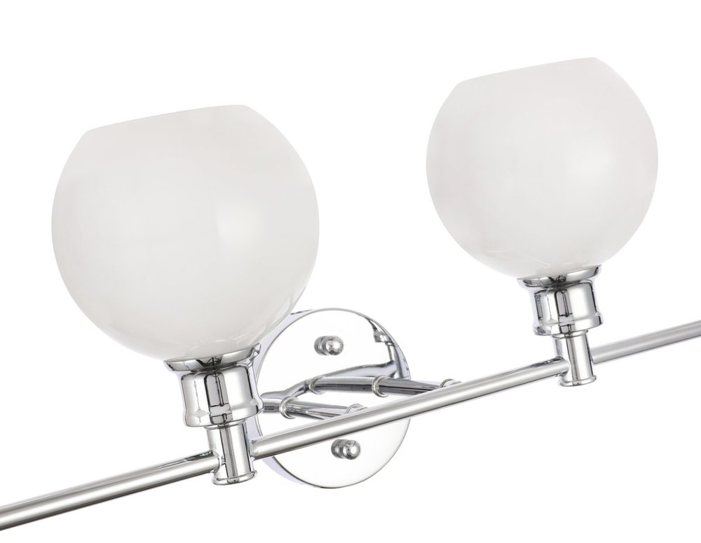 The Collier Collection of lights will be sure to have your guests admire your modern sense of style with the beautiful simplicity of its shape and form. The clean lines of the ball shaped shades create the juxtaposition of intricate simplicity, achieving a style that has both form and function. This wall lamp can be oriented facing up or down, but will always illuminate your room. Available in a brass, chrome, or black finish with either a clear or frosted ball glass shade, it is the perfect wall lamp to enhance your bathroom, foyer, or hallways, allowing you to always live a chic and fashionable lifestyle (light bulbs not included).