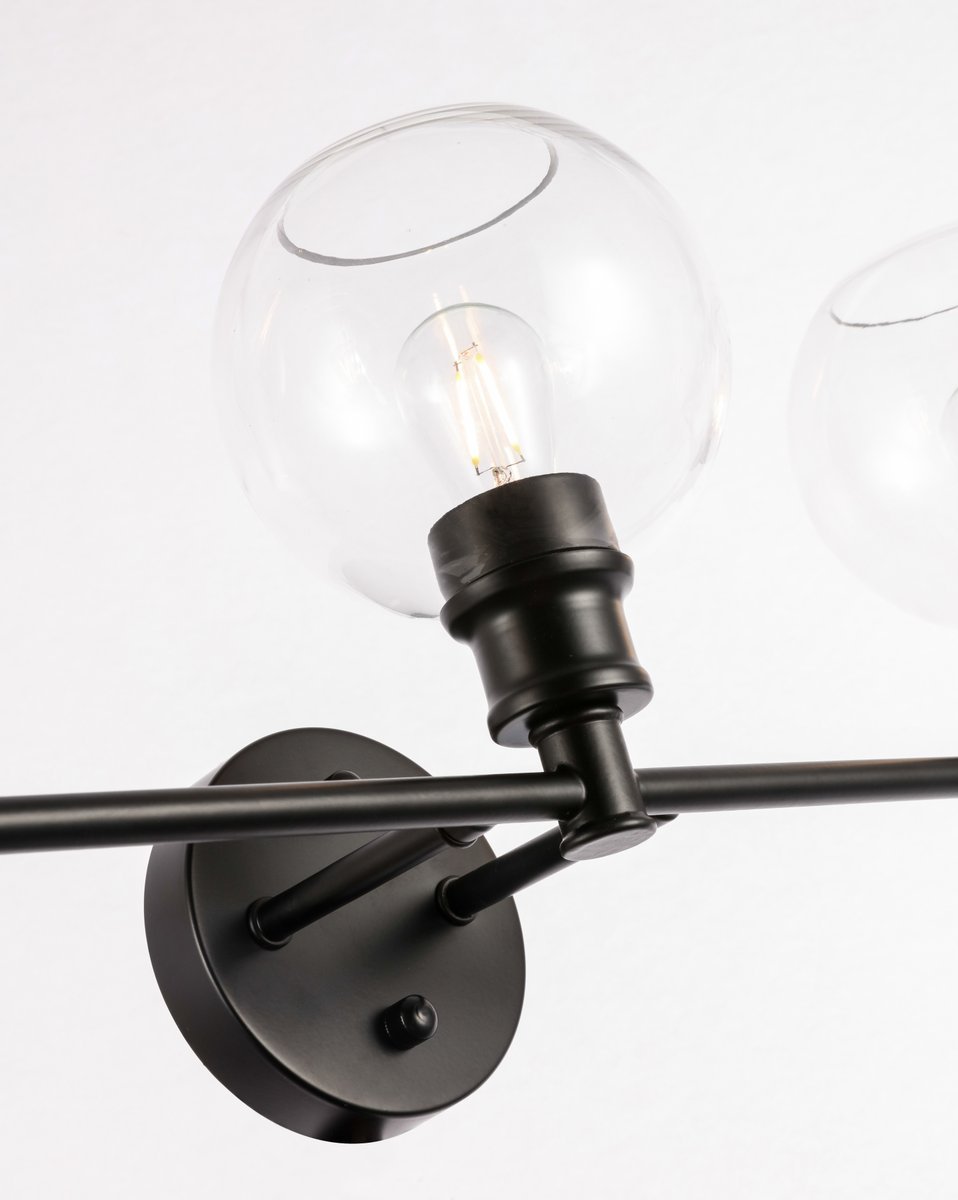 The Collier Collection of lights will be sure to have your guests admire your modern sense of style with the beautiful simplicity of its shape and form. The clean lines of the ball shaped shades create the juxtaposition of intricate simplicity, achieving a style that has both form and function. This wall lamp can be oriented facing up or down, but will always illuminate your room. Available in a brass, chrome, or black finish with either a clear or frosted ball glass shade, it is the perfect wall lamp to enhance your bathroom, foyer, or hallways, allowing you to always live a chic and fashionable lifestyle (light bulbs not included).