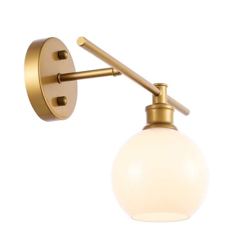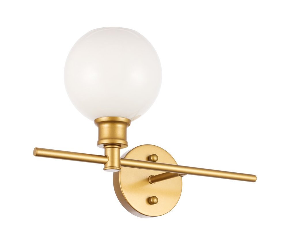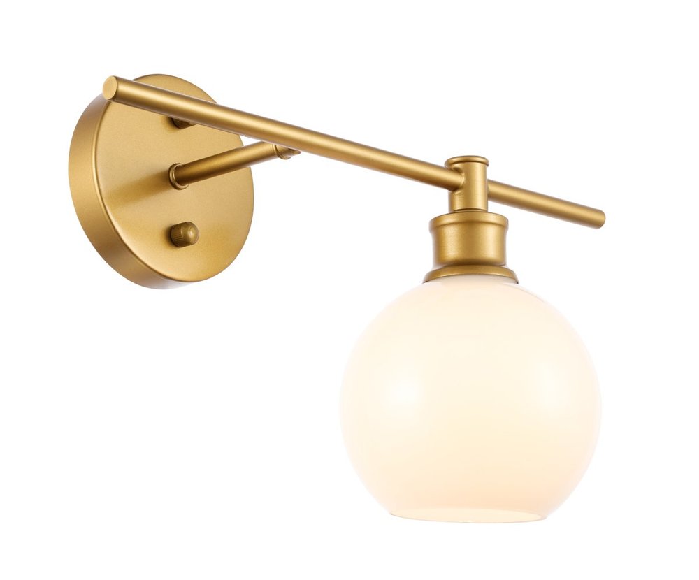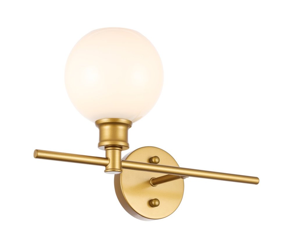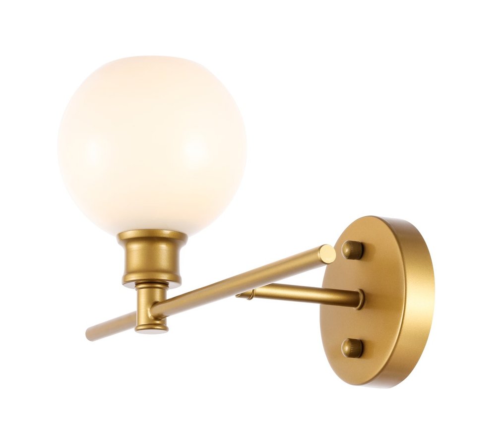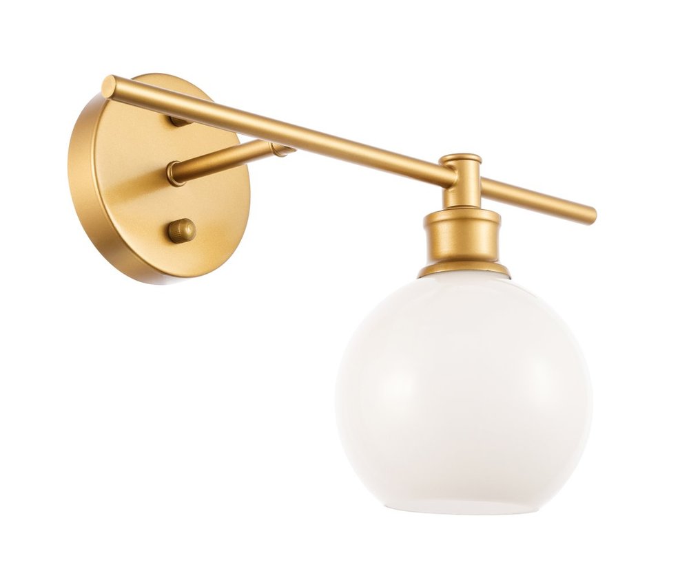 The Collier Collection of lights will be sure to have your guests admire your modern sense of style with the beautiful simplicity of its shape and form. While this wall lamp is versatile and can be oriented with the light facing up or down, its modern style will remain a constant, and its illumination will always brighten any home. Available in a brass, chrome, or black finish with either a clear or frosted ball glass shade, it is the perfect wall lamp to enhance your bathroom, foyer, or hallways, allowing you to always live in a chic and fashionable lifestyle (light bulbs not included). Also available in either left facing or right facing configuration.