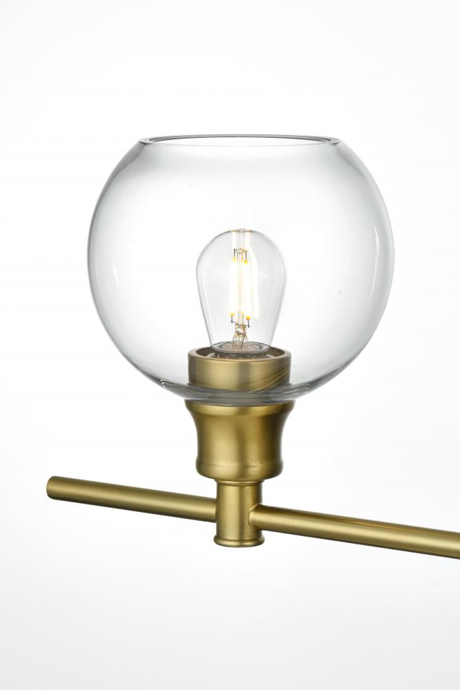 Features clear glass shades in a classic globe shape, allowing maximum light output and a modern aesthetic.