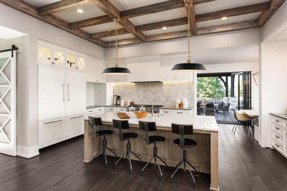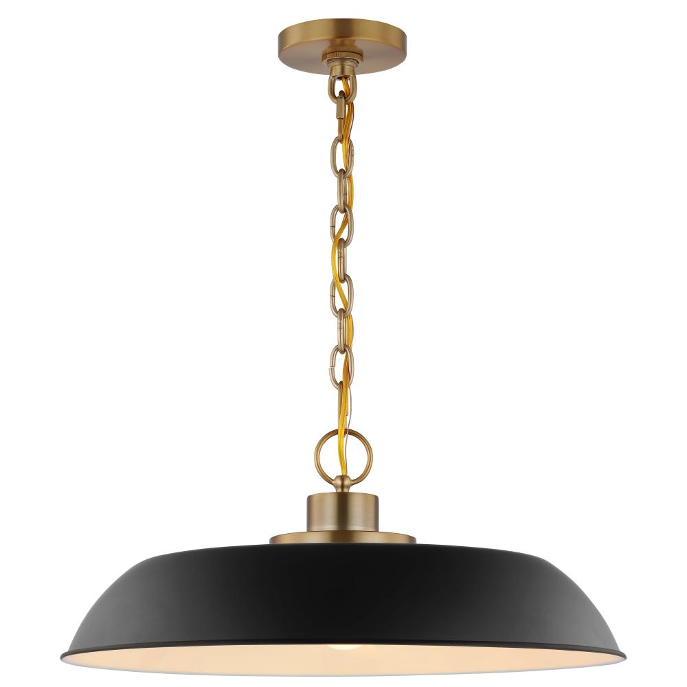 Designed with neutral, clean lines the Colony 60-7484 medium hanging pendant is ideal for an eat-in kitchen, dining room and even a bedroom. The loft-style shallow pan metal shade is finished in matte black, with a white interior to reflect the downfacing