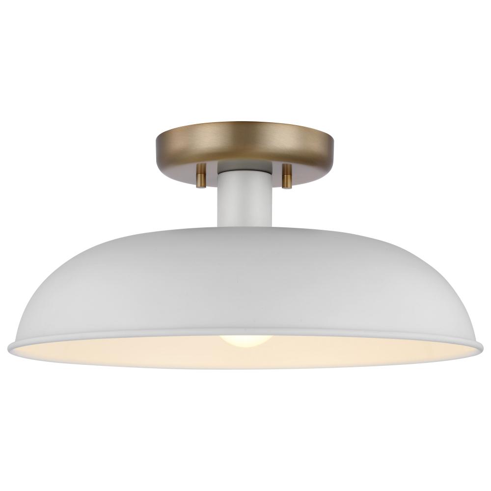 Designed with neutral, clean lines, the Colony 60-7490 small semi-flush is ideal for an eat-in kitchen, entryway, hallway and even a bedroom. The loft-style shallow pan metal shade is finished in matte white, with a matching interior to reflect the downfac