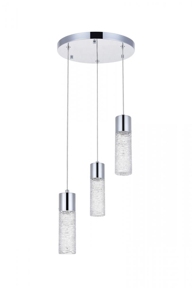 Experience the night sky and the milky way with the beauty of the Constellation 3-light pendant lamp in a chrome finish. The lights that shimmer through highlights the intricate beauty within the shades, creating an interesting weaving pattern that adds beauty and depth into your room. Its simple intricacy and compact style of the 3-light cluster makes it perfect for any home large or small, whether it's in your entry way, living room, or dining room.