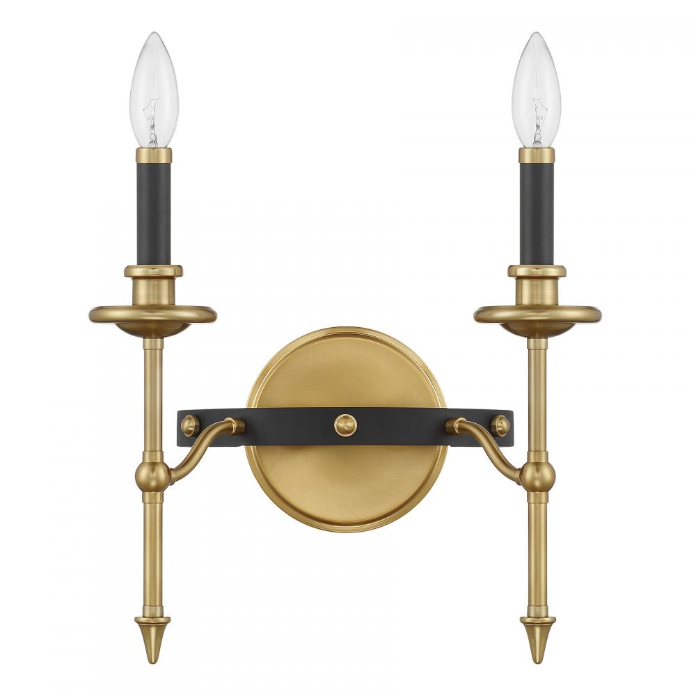 Consulate 2-Light Wall Sconce in Matte Black and Warm Brass