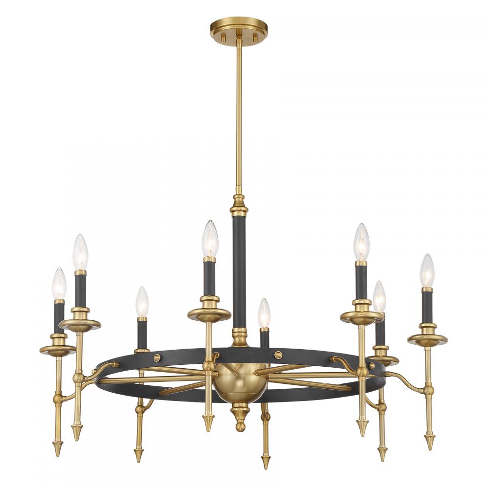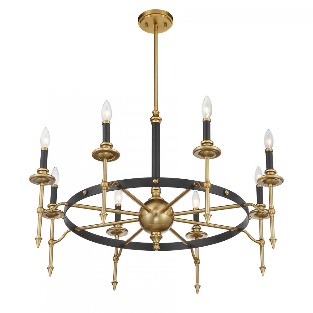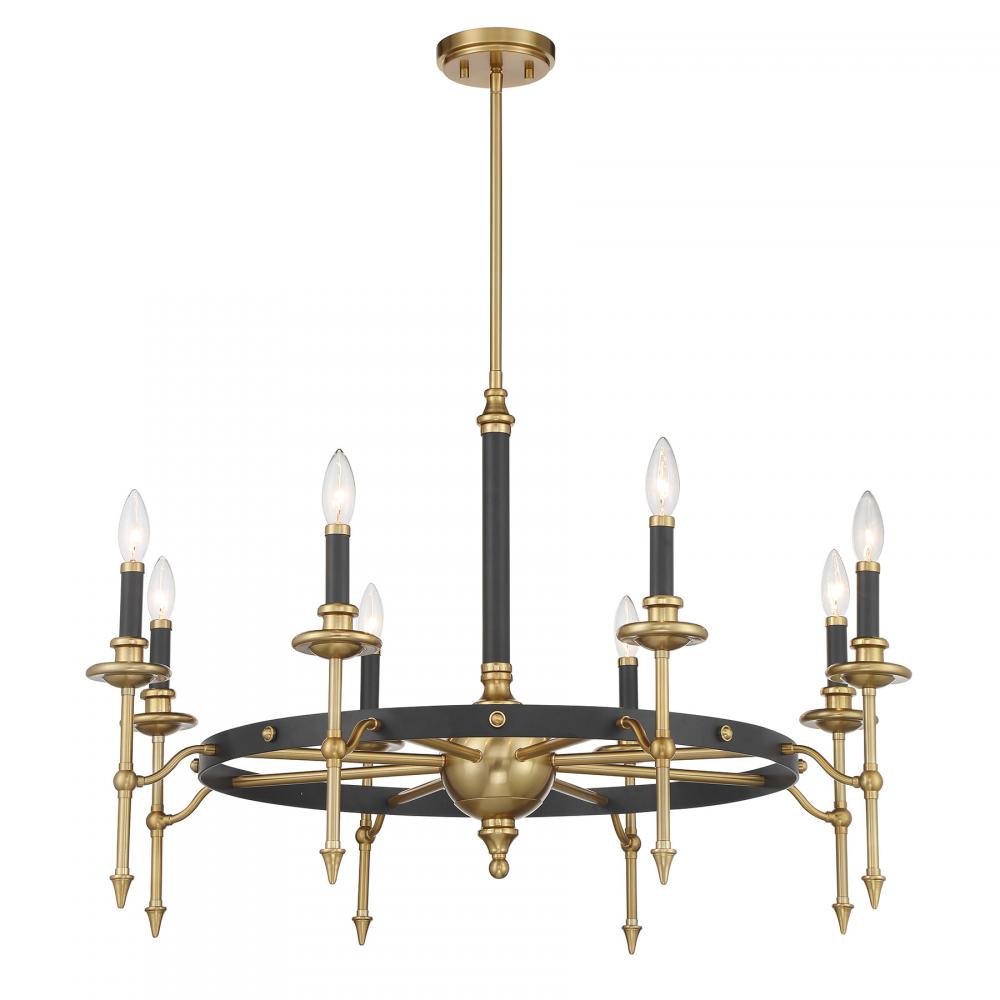 Consulate 8-Light Chandelier in Matte Black and Warm Brass