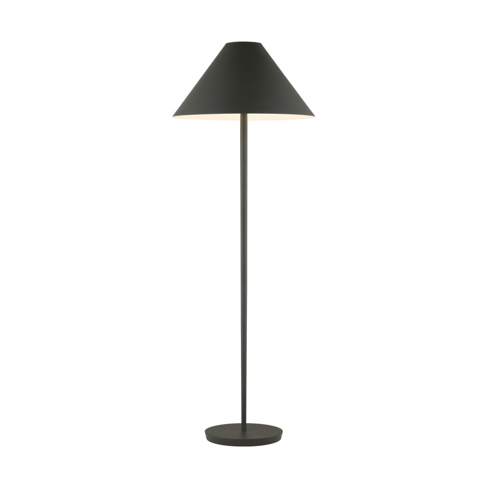 The closed-top conical metal shade is harmoniously completed by the stem’s unique and subtle reverse-taper shape