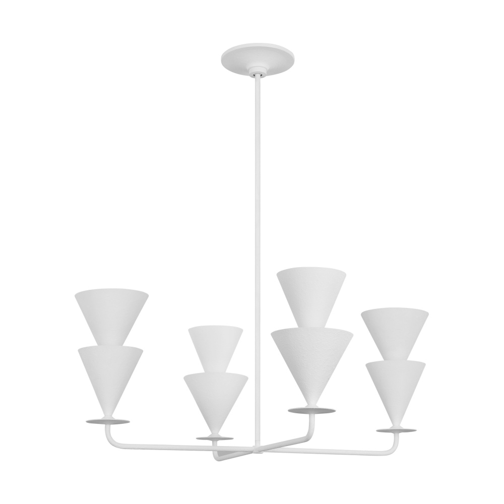 Designed by Christiane Lemieux, the Cornet four light single tier chandelier in cast plaster provides abundant light to your home, while adding style and interest. Featuring inverted cone shades, Cornet reflects 1920's - 40's European design influences, everything from art deco through to Italian midcentury – even the classic torchieres by Serge Roche. This series features 4 chandeliers, a pendant 2 wall sconces and a floor lamp, all available in a Cast Plaster finish which gives a beautiful hand-crafted look.