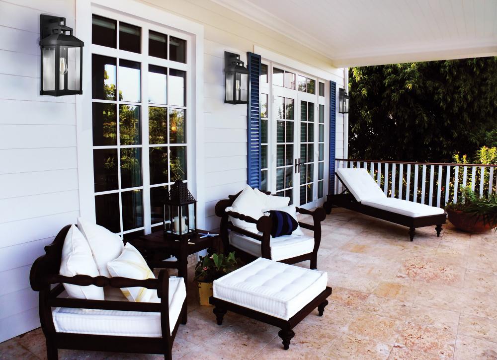 The Corning 60-7372 outdoor large wall lantern features an understated design and timeless style. The carriage-like appearance is enhanced with large clear glass panes, and pairs perfectly with a vintage-style bulb. A deep matte black finish showcases the