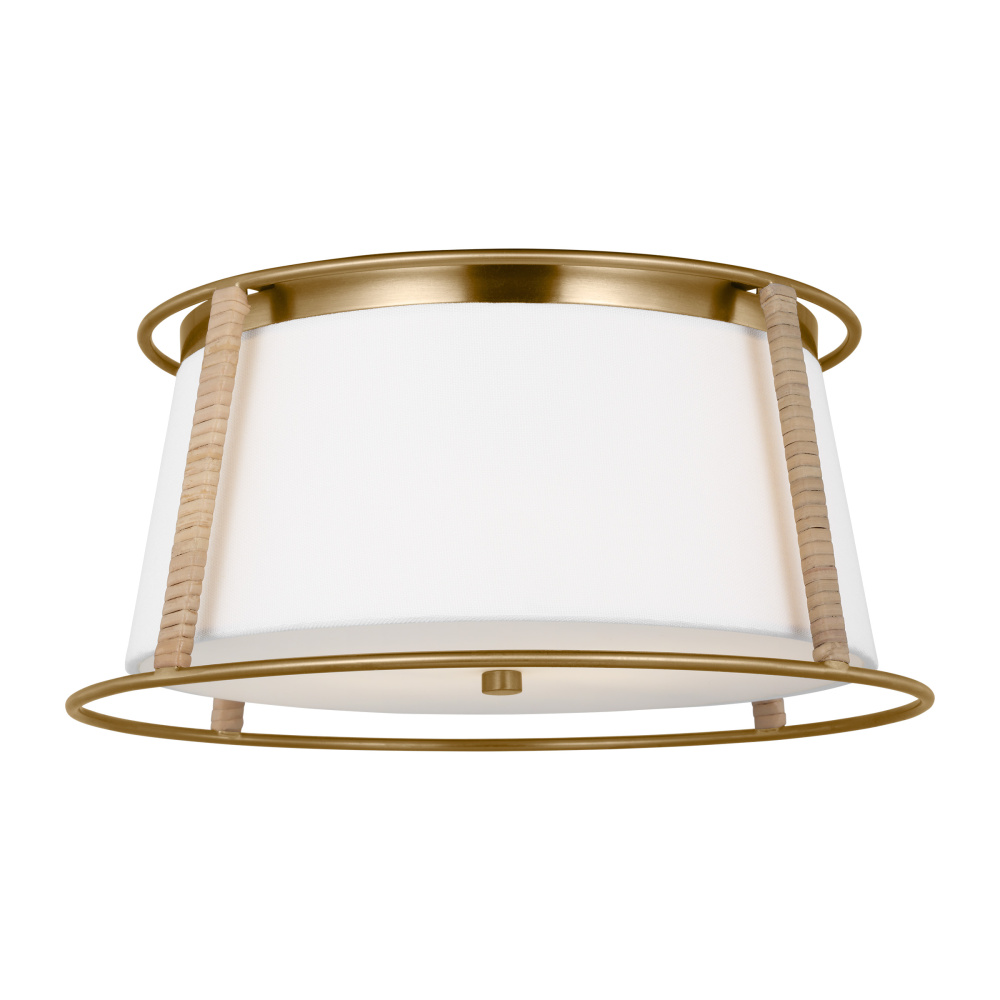 The Cortes series by Drew & Jonathan is the perfect addition to any home with minimalist or natural fiber decor. A sophisticated, satin brass finish complements the handwoven natural rattan material used to line the white linen shade.