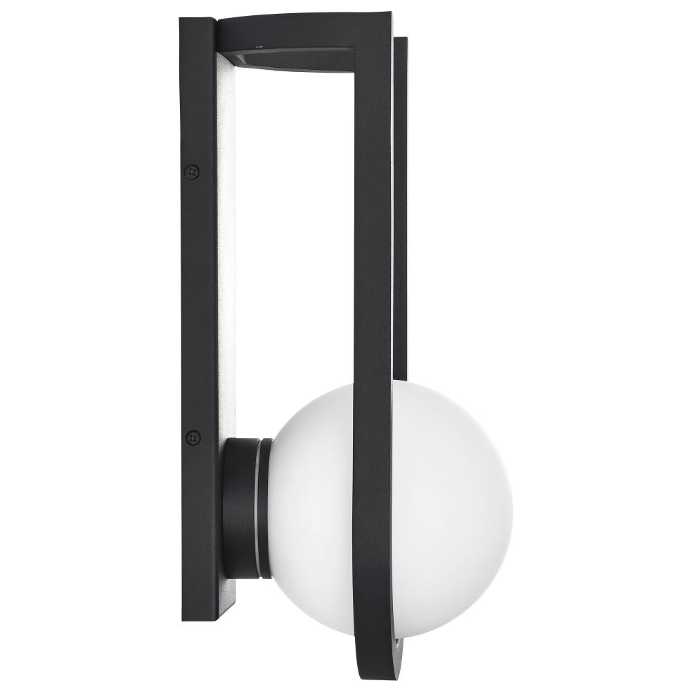 The Cradle 62-1620 LED large wall lantern makes a stylish, unique impression on a home's exterior with its contemporary-modern design. The long scoop saddles a perfect orb of opal-white glass that houses an integrated LED light source. At only 6 watts,