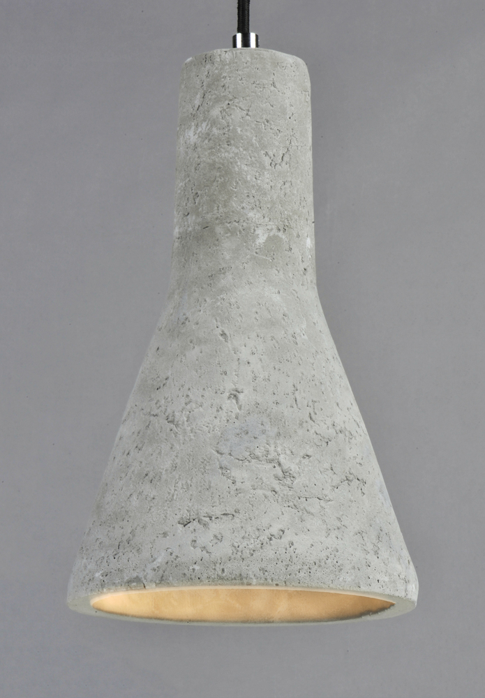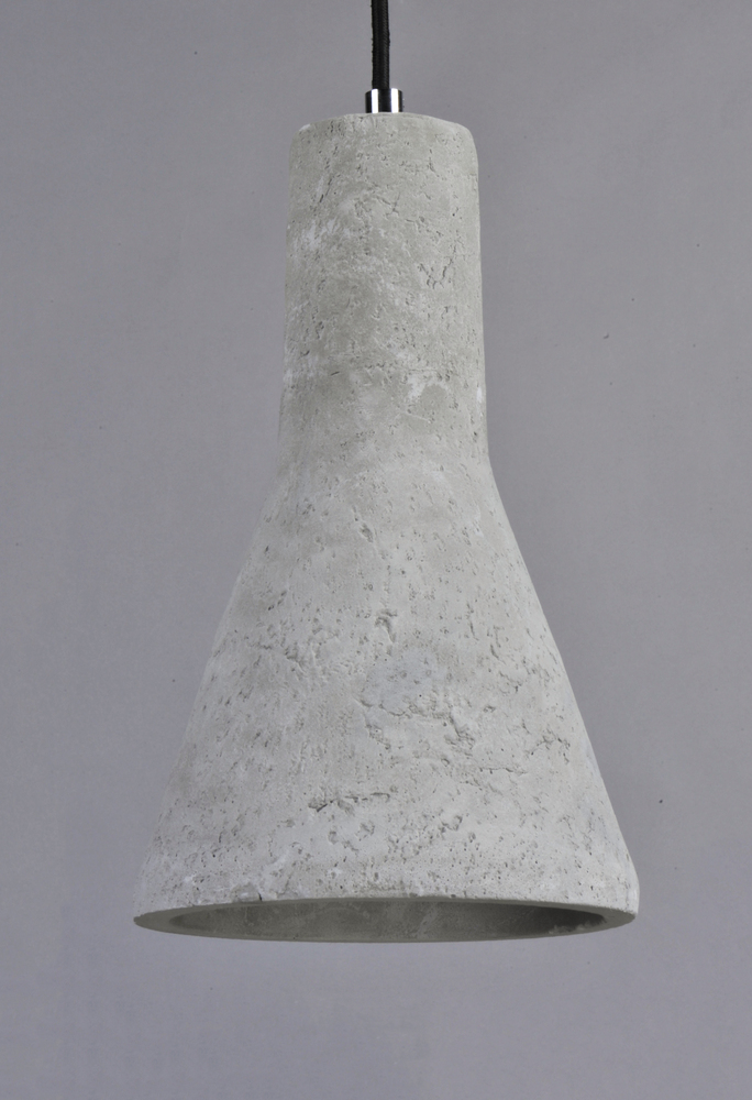 Pendants molded in natural Gray finish concrete cement provide a unique urban contemporary design element Metal Polished Chrome hardware contrasts beautifully with the black fabric covered wire. Powerful and efficient illumination is provided by included G