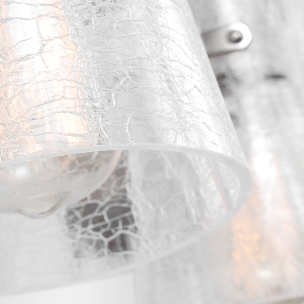Crafted with Steel in a Brushed Nickel finish with clear crackle glass shades