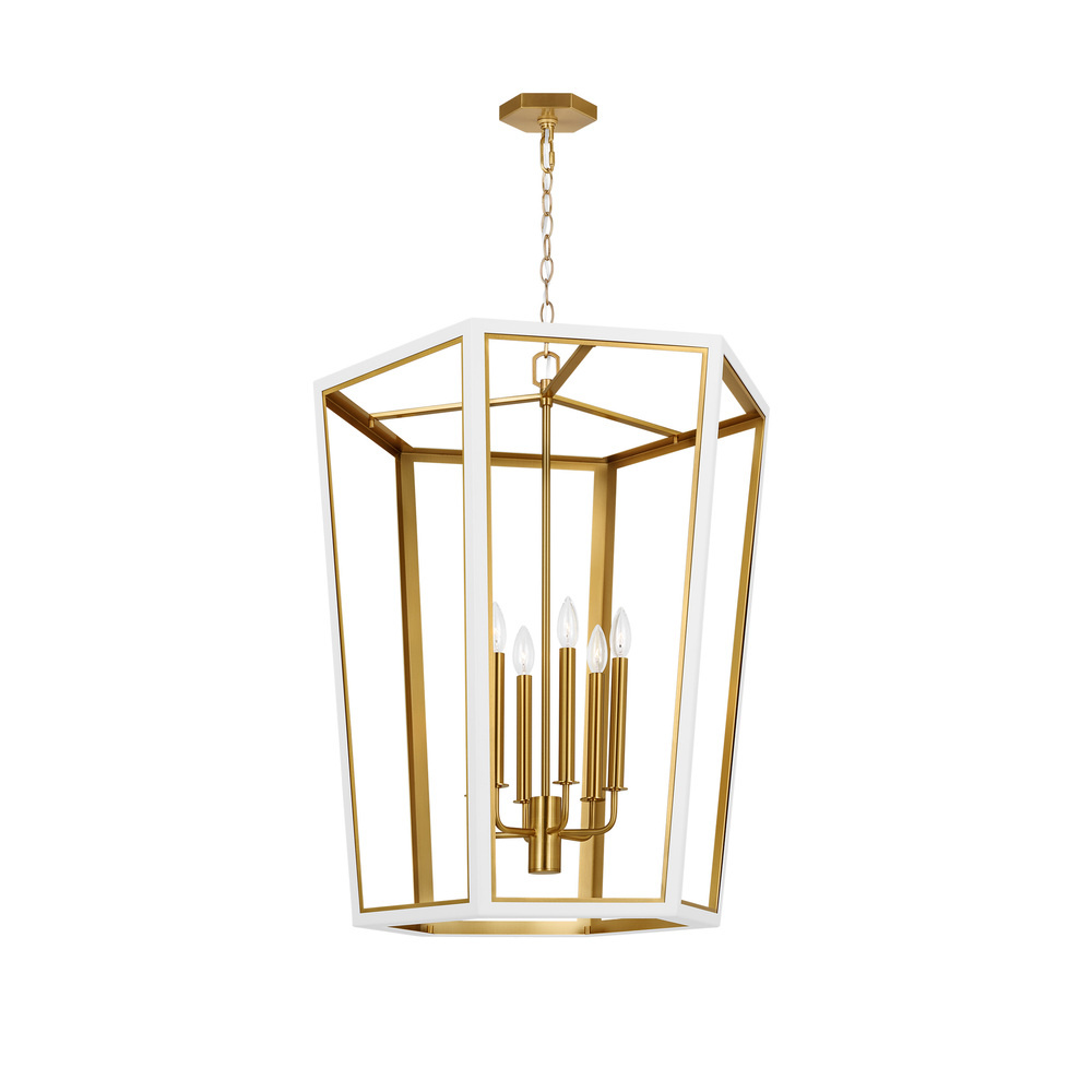 The Curt Three Light Lantern by Alexa Hampton is a modern take on an antique lantern. Elegantly crafted of steel with a Matte White or Midnight Black finish and accented with golden details. A stunning Hexagon shaped hub adds drama to the design.