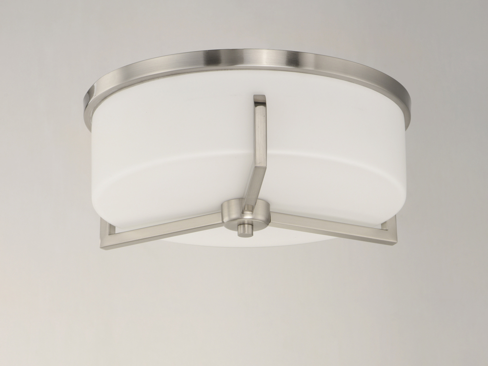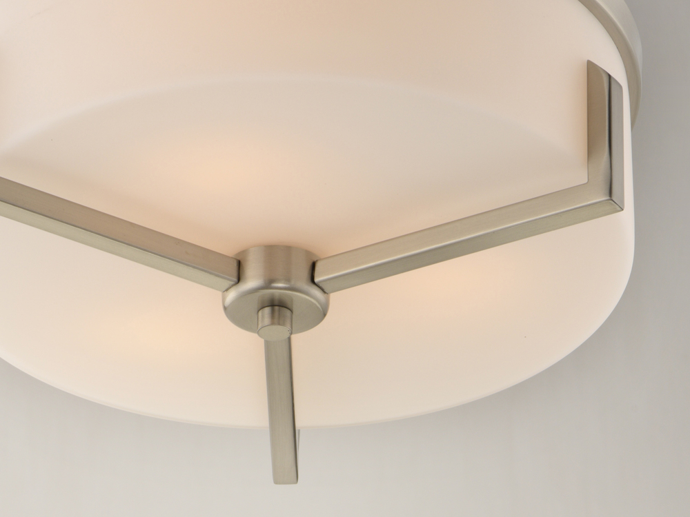 Inspired by the Modernist architect Edward Dart, this collection features straight line frames finished in Satin Brass, Satin Nickel, or Matte Black that support Satin White glass cylinders for a clean and modern look. The frames' ends turn up before t