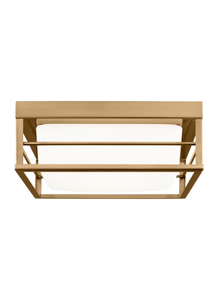 The Dearborn one light flush mount fixture in Satin Brass is a universal flush mount, with contemporary angles and open cage frame. Minimalism and elegant design, the simple geometric shape with the metal frame and LED lamping, suitable for kinds of decoration: modern, mid-century, rustic or industrial.