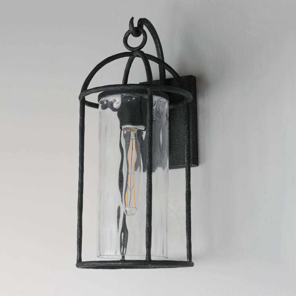 Inspired by classic European lanterns and handcrafted ironwork, the Del Mar collection brings timeless sophistication to exterior spaces. Its airy open-frame silhouette is crafted of hammered iron, elegantly arched with a graceful hook detail that nods to