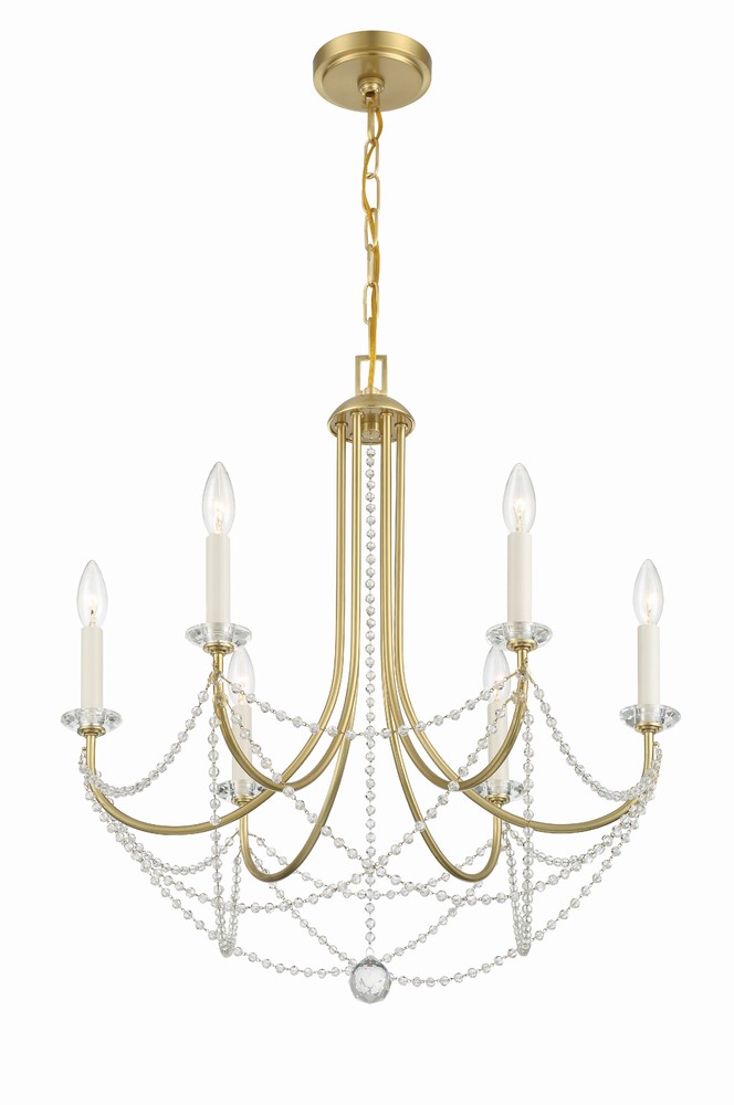 The Delilah chandelier makes a grand statement to your interior. Its swooping metal frame gracefully hangs crisscrossed cascading crystal beads from each metal arm. This modern-style crystal chandelier adds a rich and formal look to a room, making it the ultimate final touch.