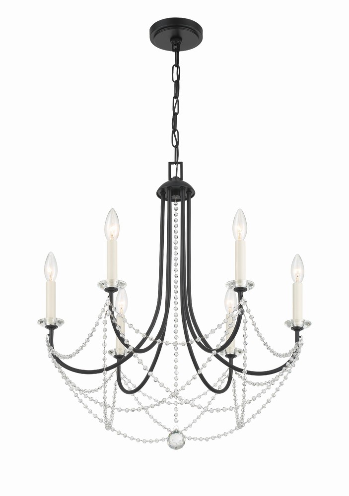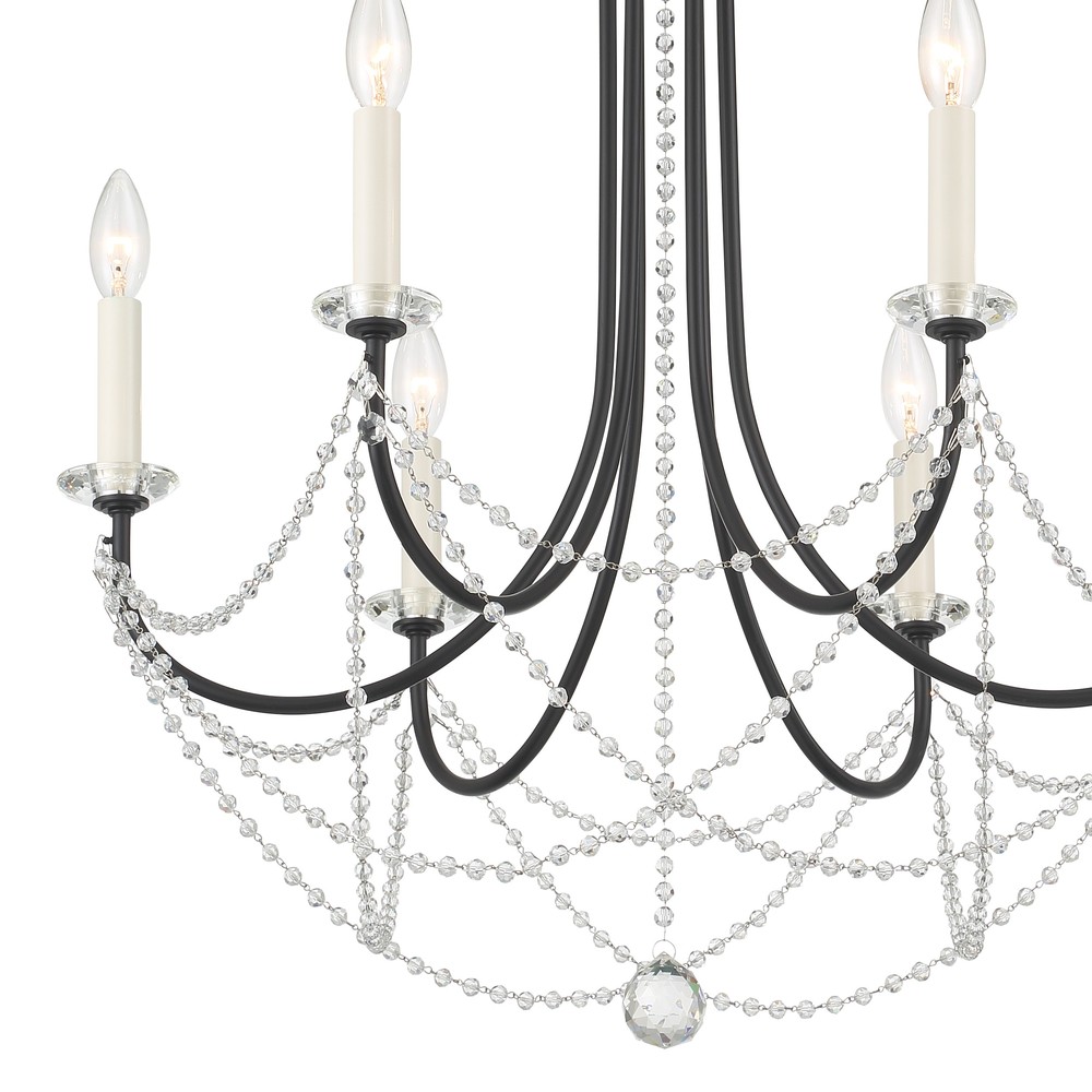 The Delilah chandelier makes a grand statement to your interior. Its swooping metal frame gracefully hangs crisscrossed cascading crystal beads from each metal arm. This modern-style crystal chandelier adds a rich and formal look to a room, making it the ultimate final touch.