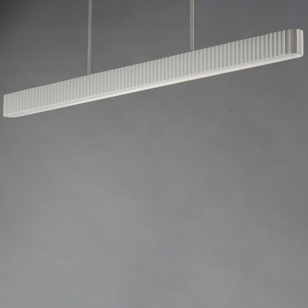 Long spans of fluted concrete panels blend Western classicism with modern technology. Scalloped concrete is finished in a Chalky White finish and suitable for damp locations. Choose from stem hung pendants or backlit wall panels that provide ambient light
