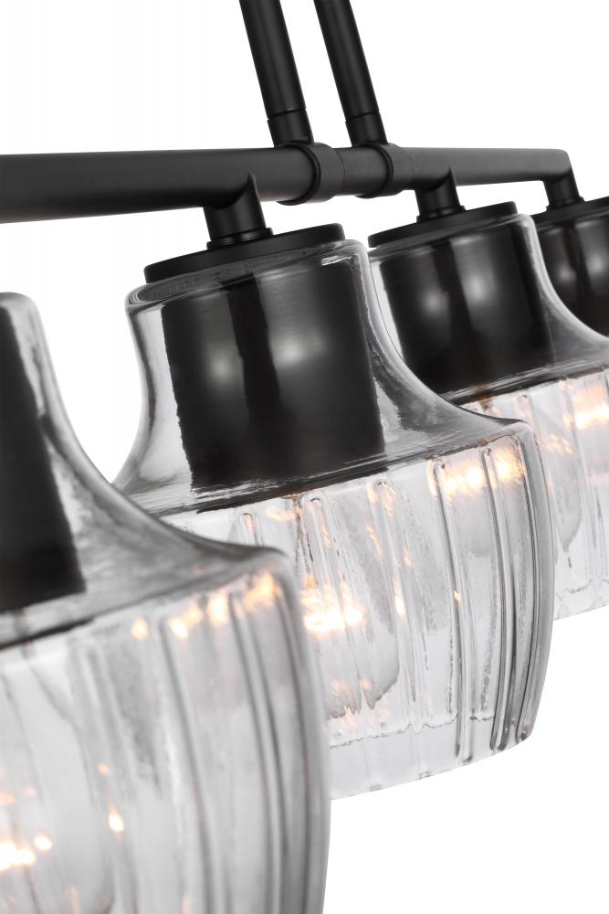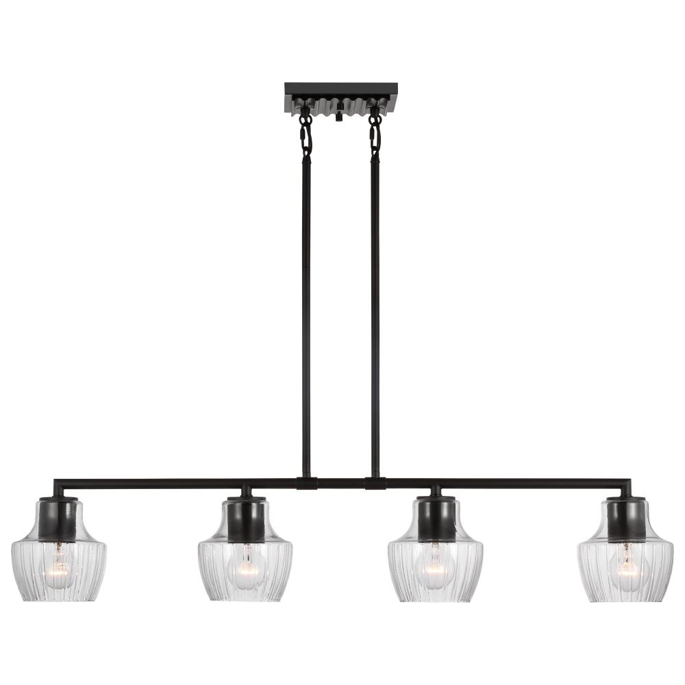 A fine balance is the Destin 60-7704 island light's strongest asset, the stylish glass and lovely details set it apart from traditional lighting. The clear glass curves over the bulbs, subtly showcasing the light through ribbed detailing. Mimicking the