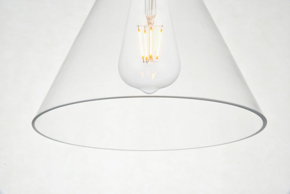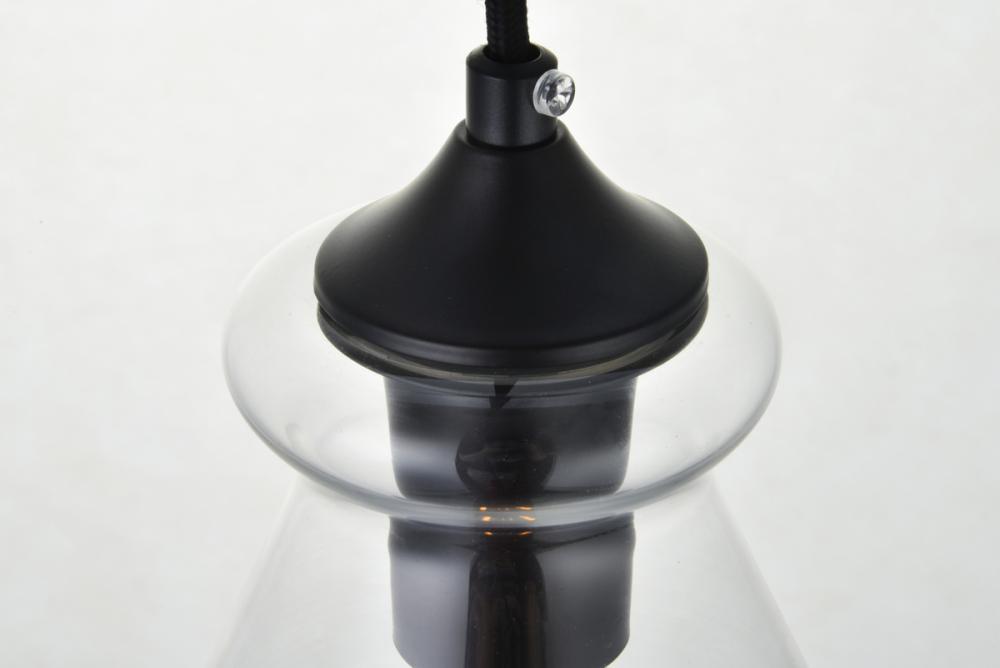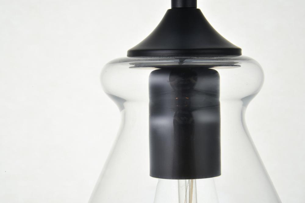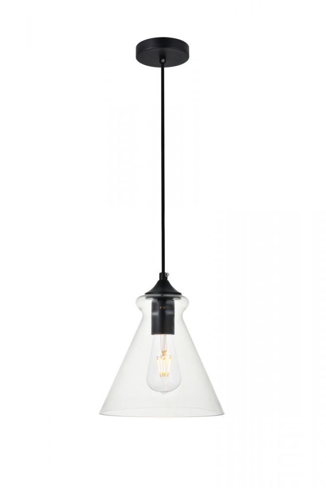 The small, but mighty Destry collection offers sleek pendant lamps that will add a powerful accent to your urban, industrial, or transitional décor. The light’s black hardware finish adds to the interest of the piece. Black 'top hat' design accentuates the clear glass shade. Each black and clear conical shade holds one incandescent or LED light bulb (not included). Brighten your kitchen island, bathroom, entryway, or den with this one-light statement fixture. You may adjust the height to your desired length between 15 and 69