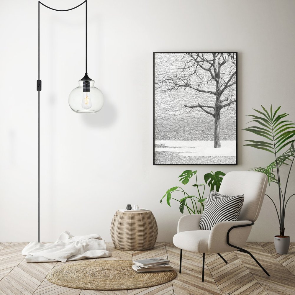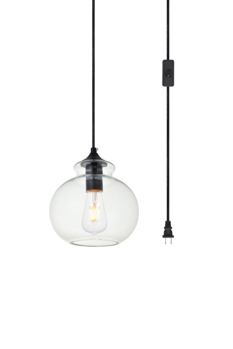 The small, but mighty Destry collection offers sleek pendant lamps that will add a powerful accent to your urban, industrial, or transitional décor. The light’s black hardware finish adds to the interest of the piece. Black 'top hat' design accentuates the clear glass shade. Each black and clear sugar pot shade holds one incandescent or LED light bulb (not included). Brighten your kitchen island, bathroom, entryway, or den with this one-light statement fixture. Plug-in design for easy access lighting with built-in on/off switch. Simply hang this piece on the provided swag hooks and plug it in for an effortlessly easy installation - can be hung from a sloped or vaulted ceiling.