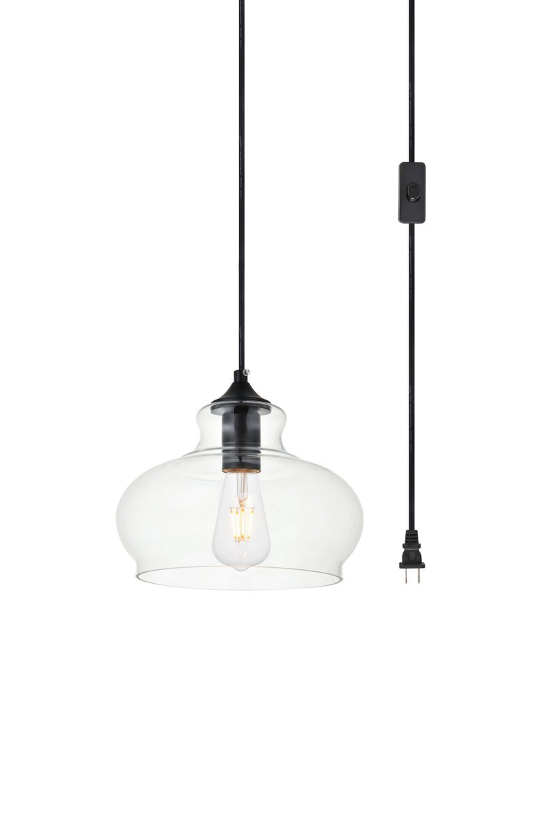 Elegant LDPG2245BK - Destry 1 Light Black plug-in Pendant With Clear Glass