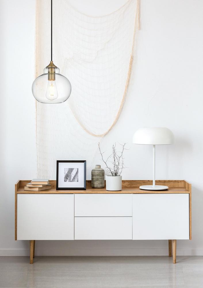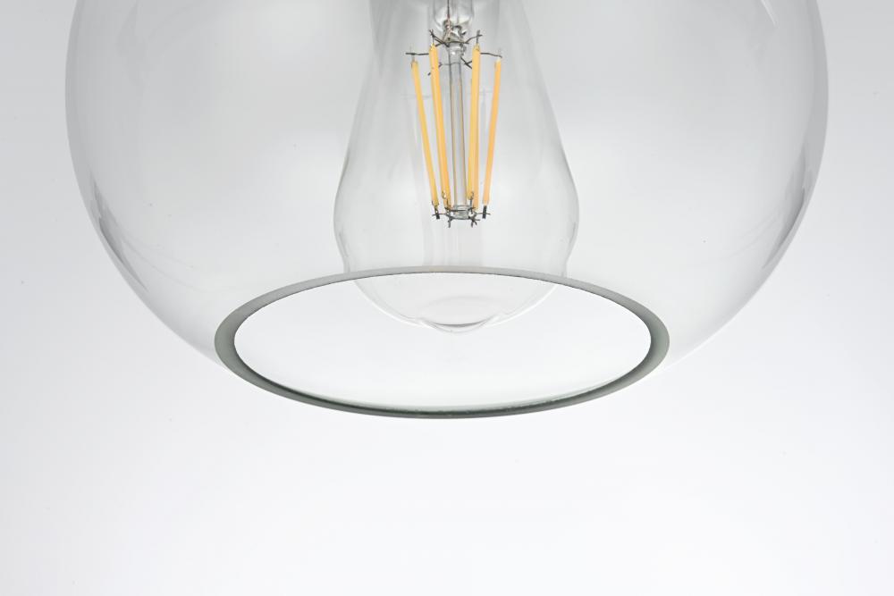 Features a clear glass shade, offering bright, unobstructed light and a clean, modern look.
