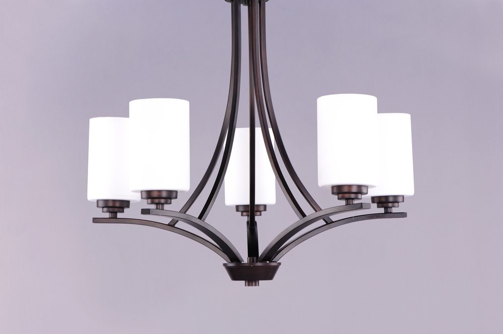 Low sloping arms of rectilinear tubing is finished in a variety of options that include Satin Nickel, Oil Rubbed Bronze, Matte Black, and a contemporary Satin Brass finish. Tall, cylindrical Satin White glass shades soften the light source within. Offered