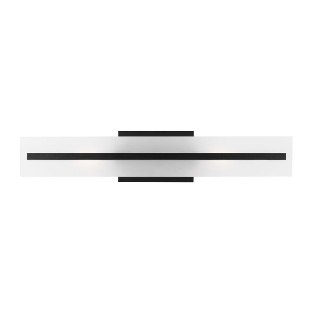 The Dex two light vanity fixture in Midnight Black is a contemporary design with three finishes and white acrylic diffuser creating a crisp look and bright clean ambiance. With the clean lines and classic styling, the Dex vanity series is versatile enough to be used in any transitional setting.
