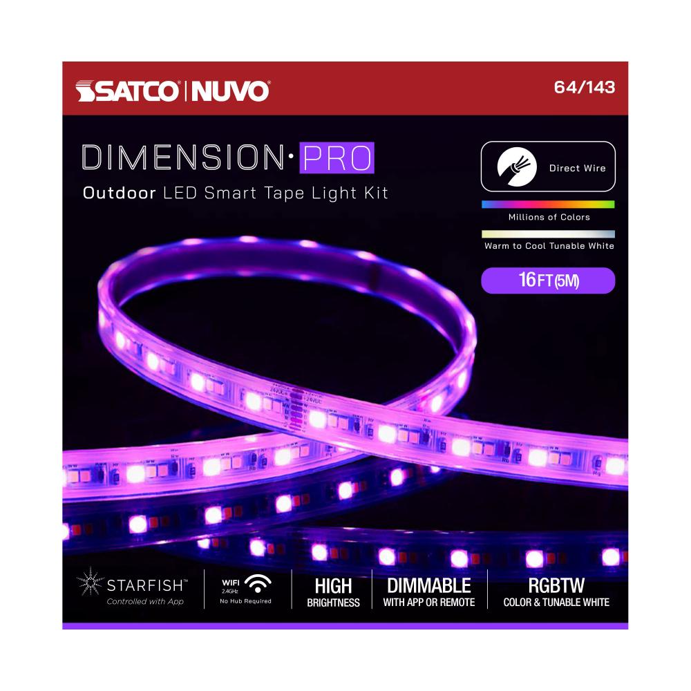 Elevate your outdoor space with DIMENSION Pro Outdoor 64-143 tape light kit, the smart app-controlled 16-ft direct-wire tape light that will redefine your lighting experience. Sync the lighting to your favorite soundtrack, create the perfect ambiance with
