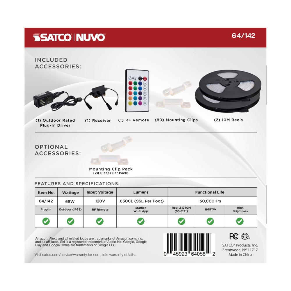 2 reels of 32 feet (10M) to make 64 feet (20M) total; Mounting Clips for outdoor installation